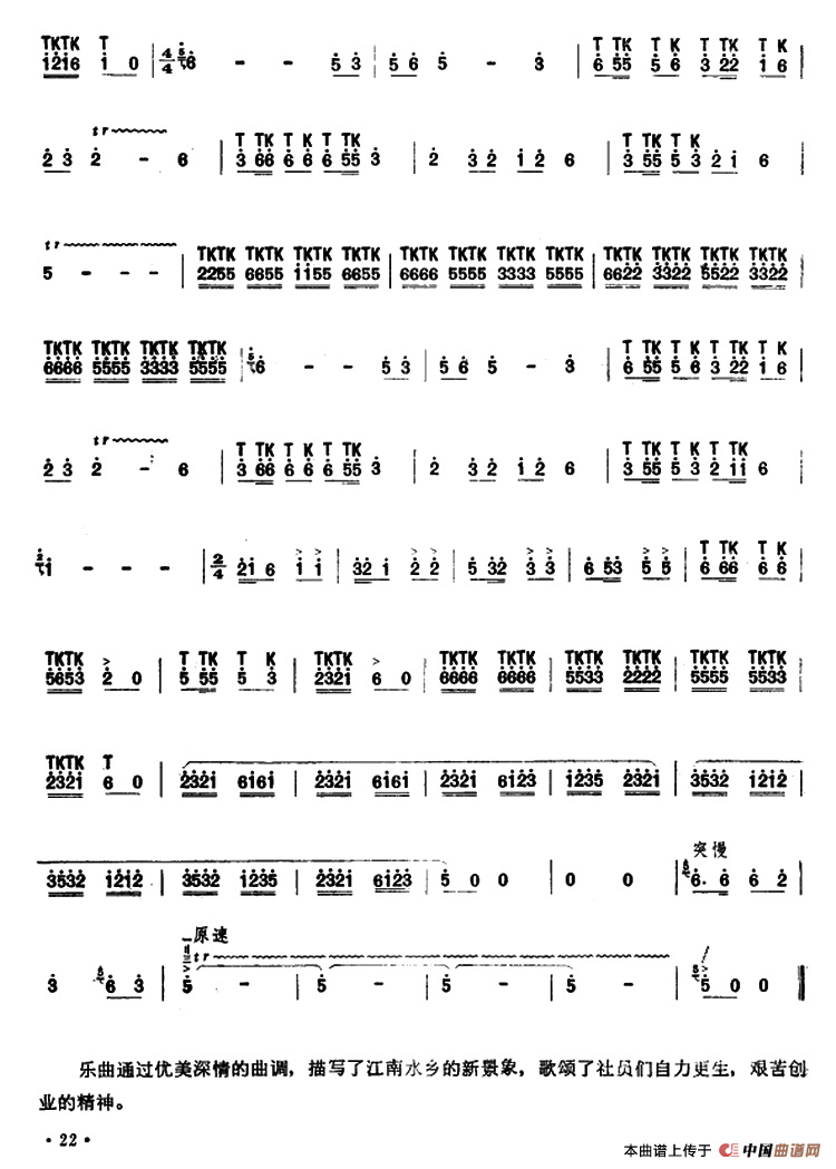 关于《水乡新貌》曲谱的评论