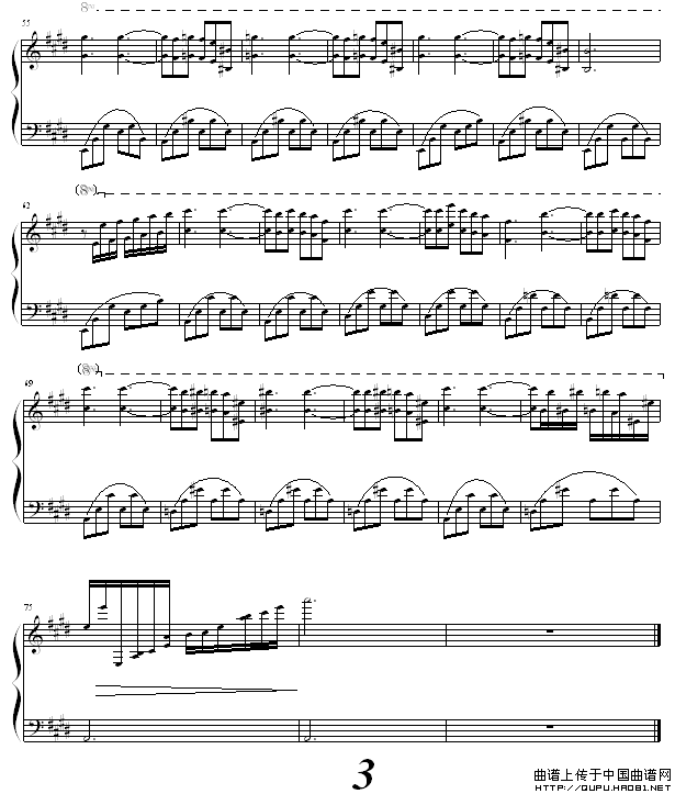 提示:在曲谱图片上单击右键,选择“图片另存为...”即可将曲谱保存到您的电脑中,打印时候可将图片插入到WORD中,调整合适大小打印即可。