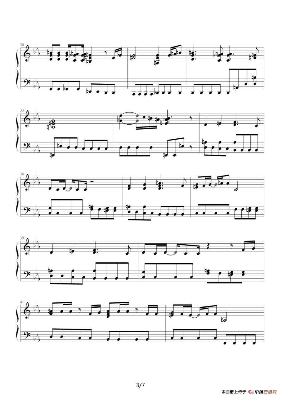 提示:在曲谱图片上单击右键,选择“图片另存为...”即可将曲谱保存到您的电脑中,打印时候可将图片插入到WORD中,调整合适大小打印即可。