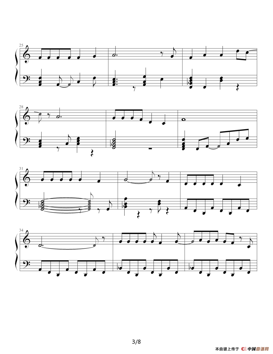 提示:在曲谱图片上单击右键,选择“图片另存为...”即可将曲谱保存到您的电脑中,打印时候可将图片插入到WORD中,调整合适大小打印即可。