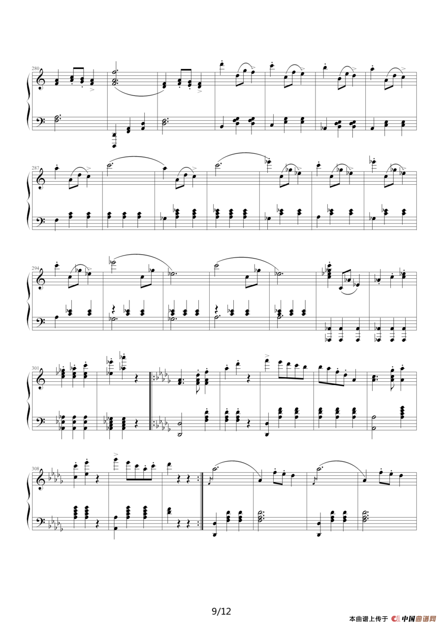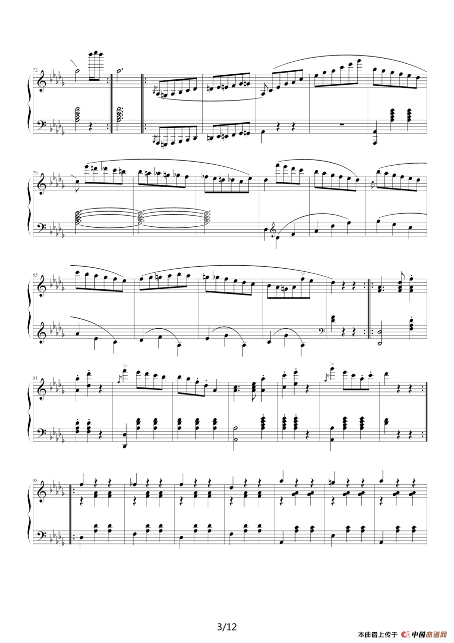 提示:在曲谱图片上单击右键,选择“图片另存为...”即可将曲谱保存到您的电脑中,打印时候可将图片插入到WORD中,调整合适大小打印即可。