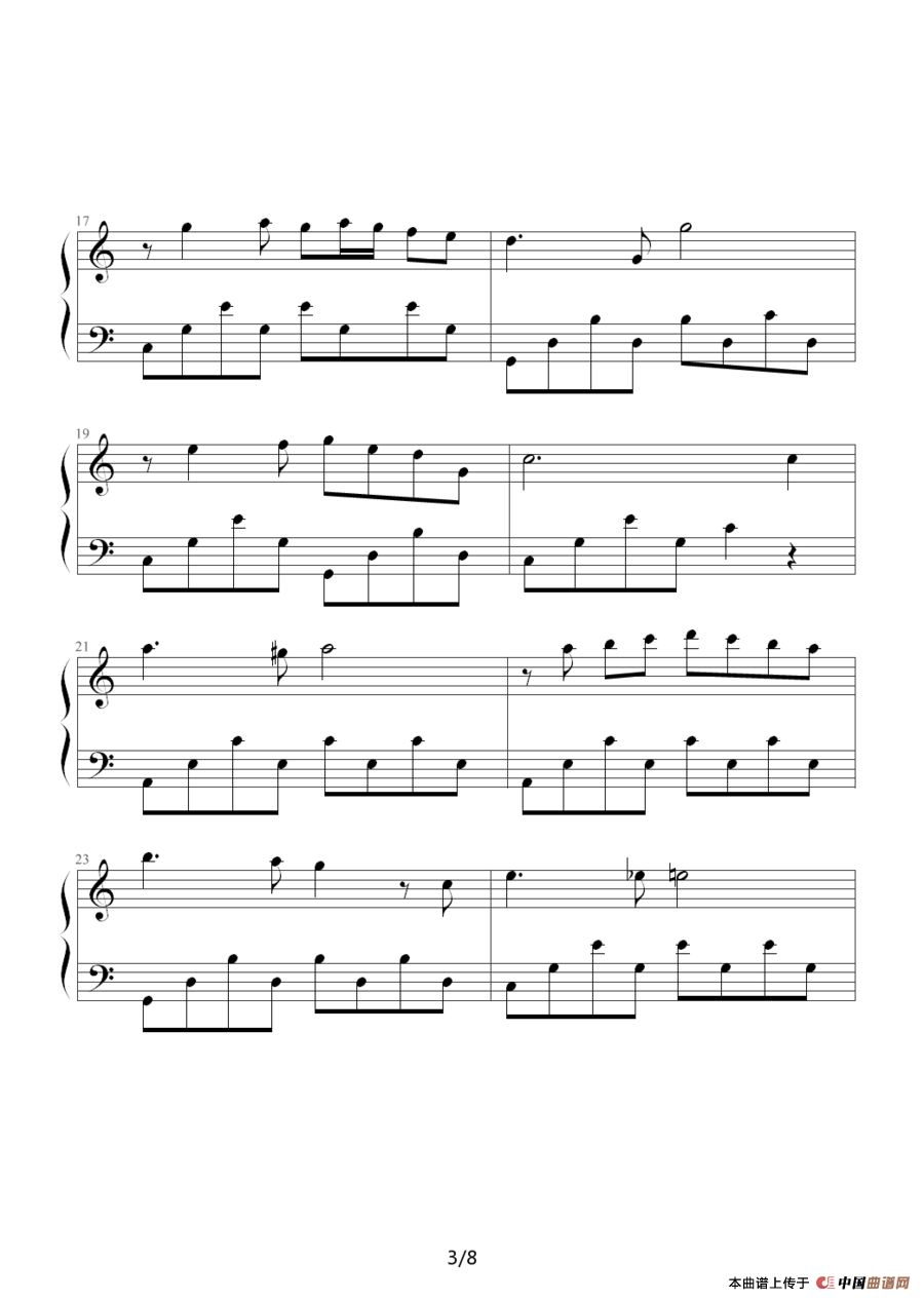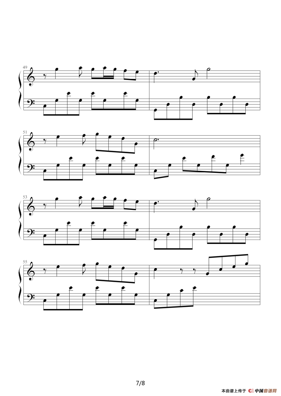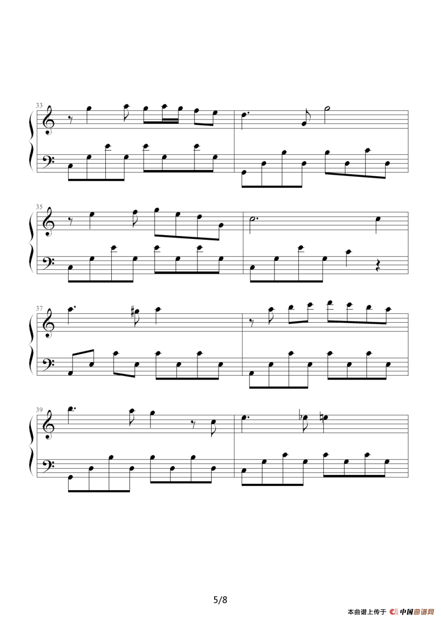 提示:在曲谱图片上单击右键,选择“图片另存为...”即可将曲谱保存到您的电脑中,打印时候可将图片插入到WORD中,调整合适大小打印即可。
