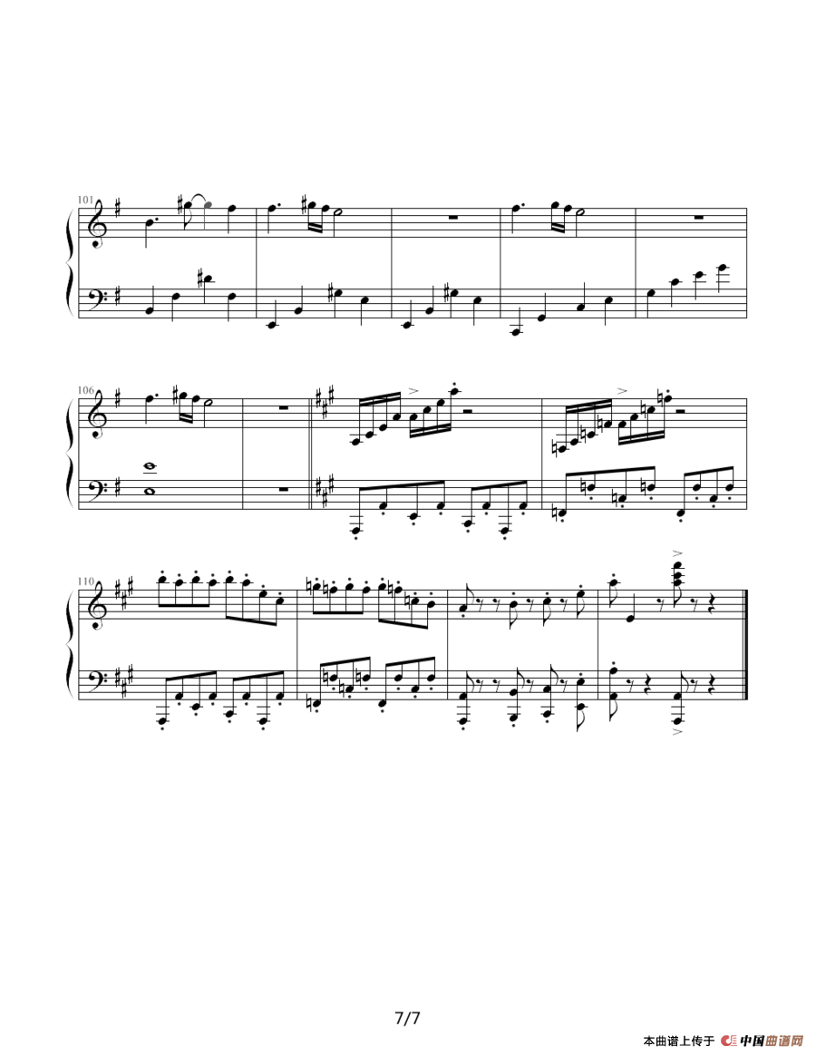 提示:在曲谱图片上单击右键,选择“图片另存为...”即可将曲谱保存到您的电脑中,打印时候可将图片插入到WORD中,调整合适大小打印即可。