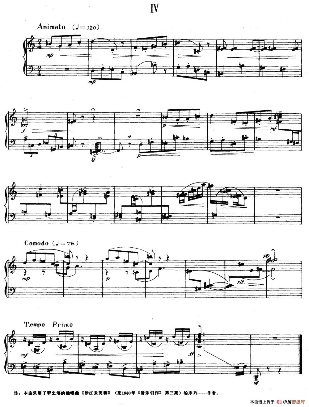 关于《钢琴小品四首》曲谱的评论