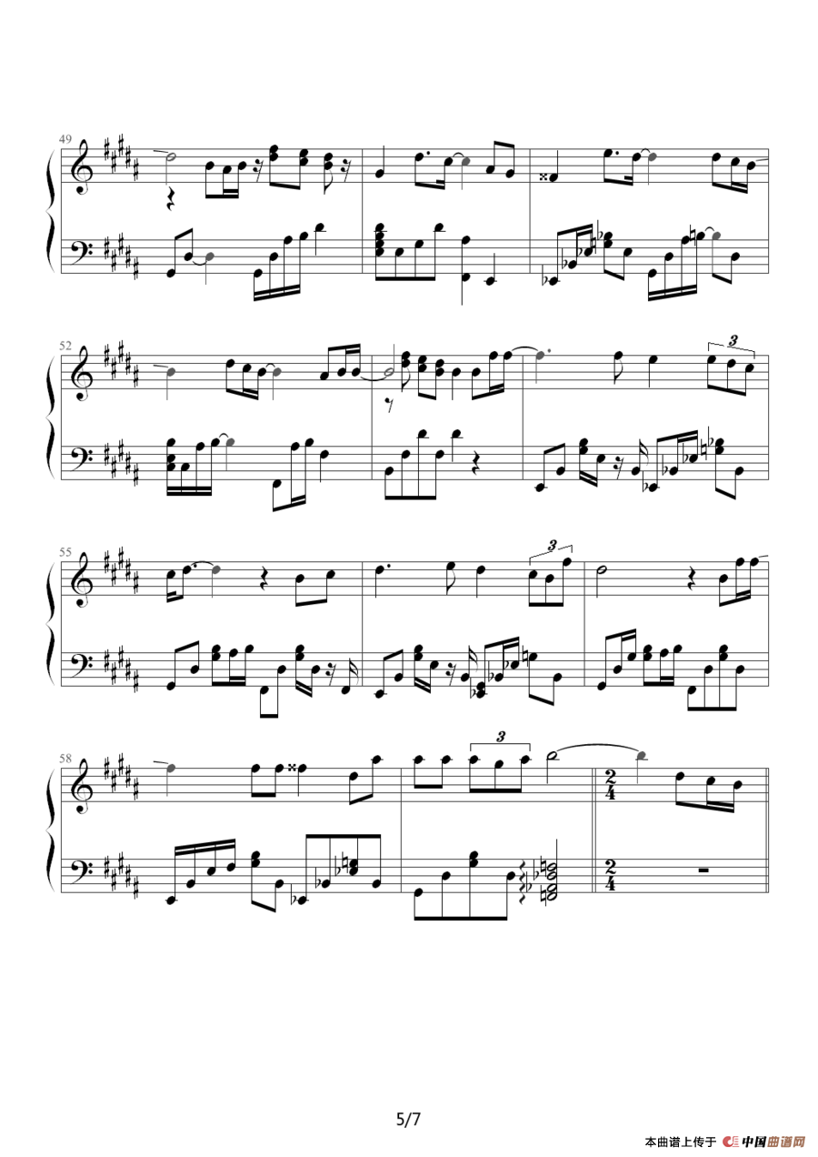 提示:在曲谱图片上单击右键,选择“图片另存为...”即可将曲谱保存到您的电脑中,打印时候可将图片插入到WORD中,调整合适大小打印即可。