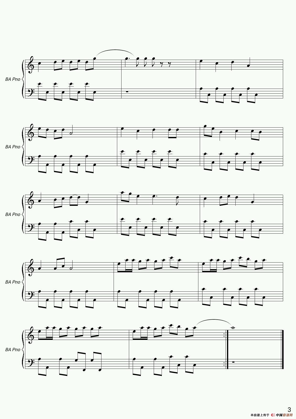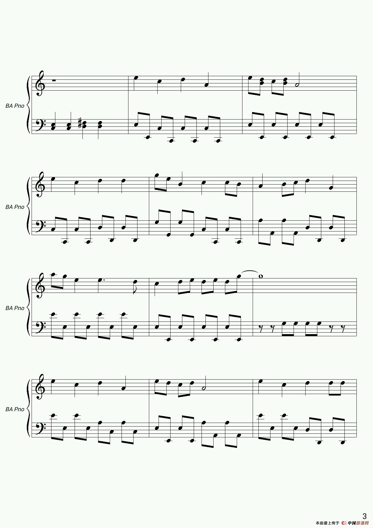 提示:在曲谱图片上单击右键,选择“图片另存为...”即可将曲谱保存到您的电脑中,打印时候可将图片插入到WORD中,调整合适大小打印即可。