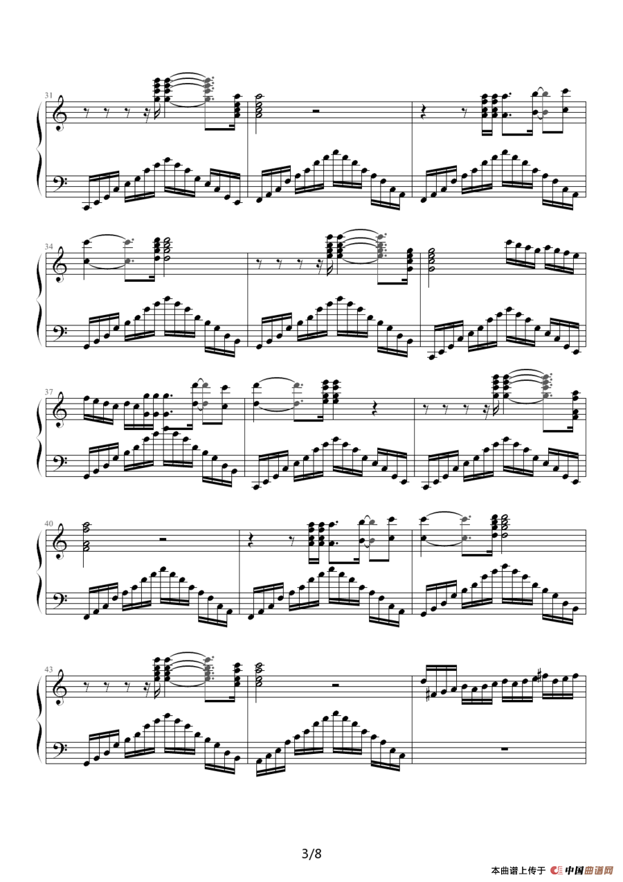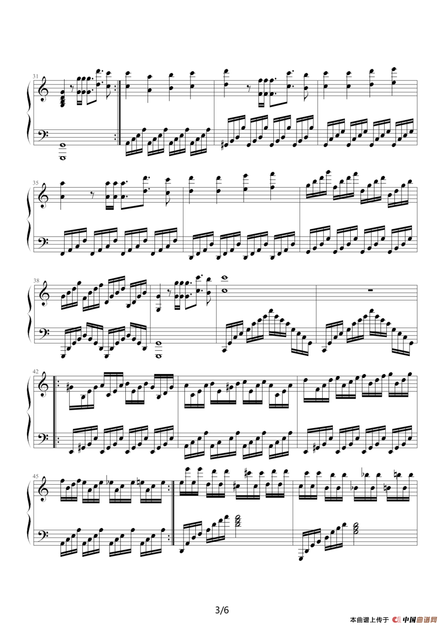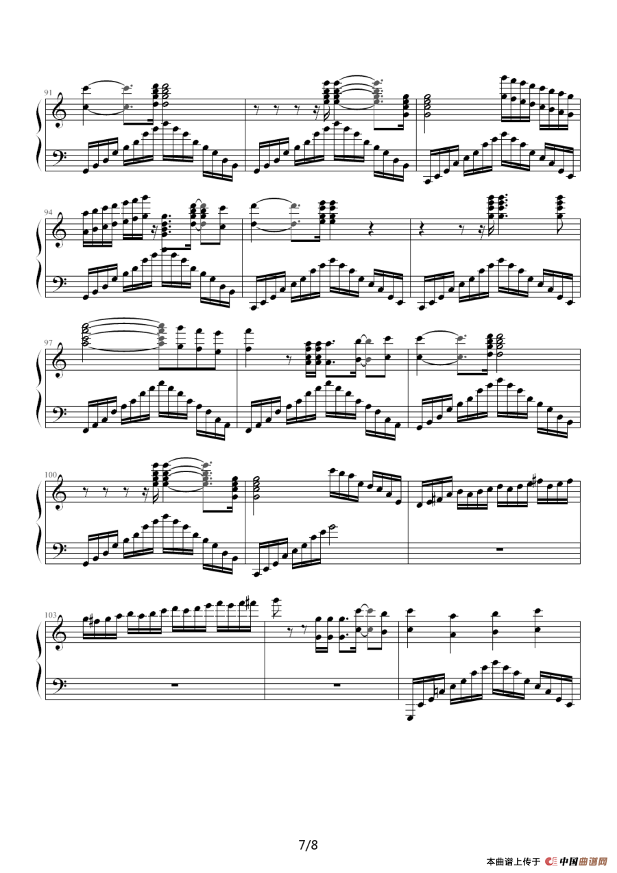 提示:在曲谱图片上单击右键,选择“图片另存为...”即可将曲谱保存到您的电脑中,打印时候可将图片插入到WORD中,调整合适大小打印即可。