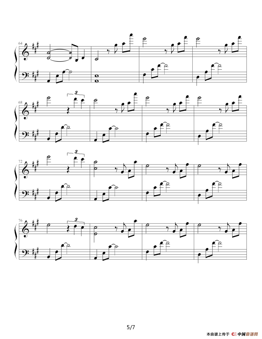 提示:在曲谱图片上单击右键,选择“图片另存为...”即可将曲谱保存到您的电脑中,打印时候可将图片插入到WORD中,调整合适大小打印即可。