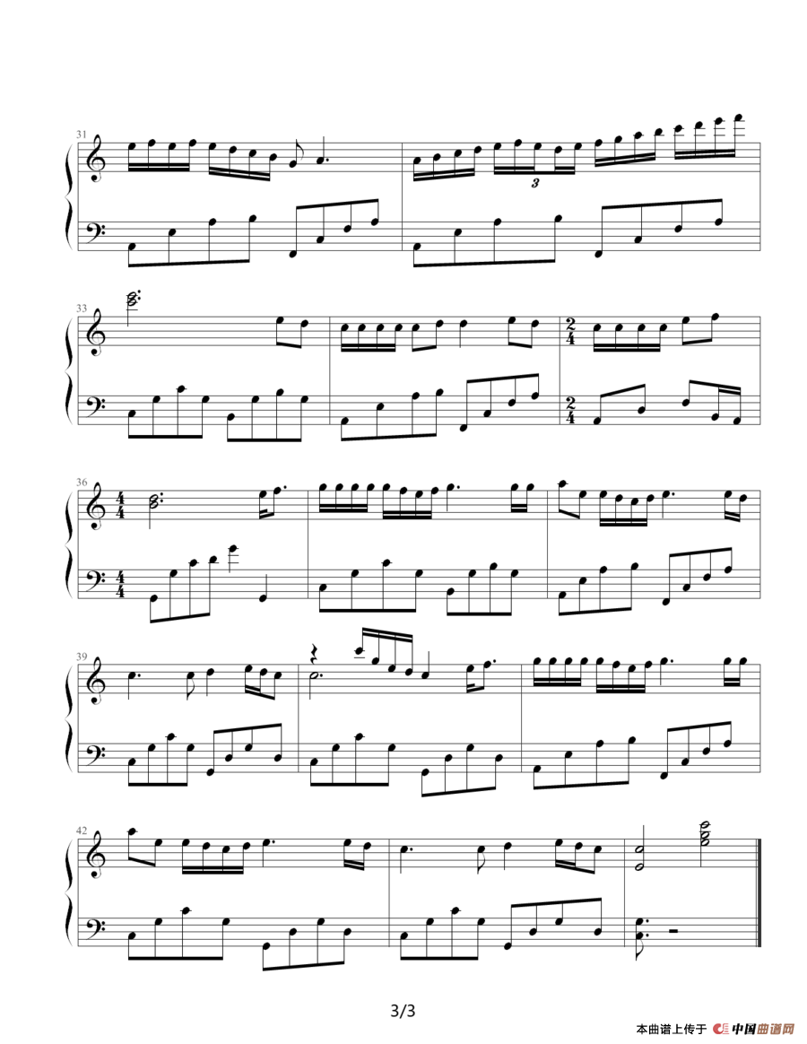 提示:在曲谱图片上单击右键,选择“图片另存为...”即可将曲谱保存到您的电脑中,打印时候可将图片插入到WORD中,调整合适大小打印即可。