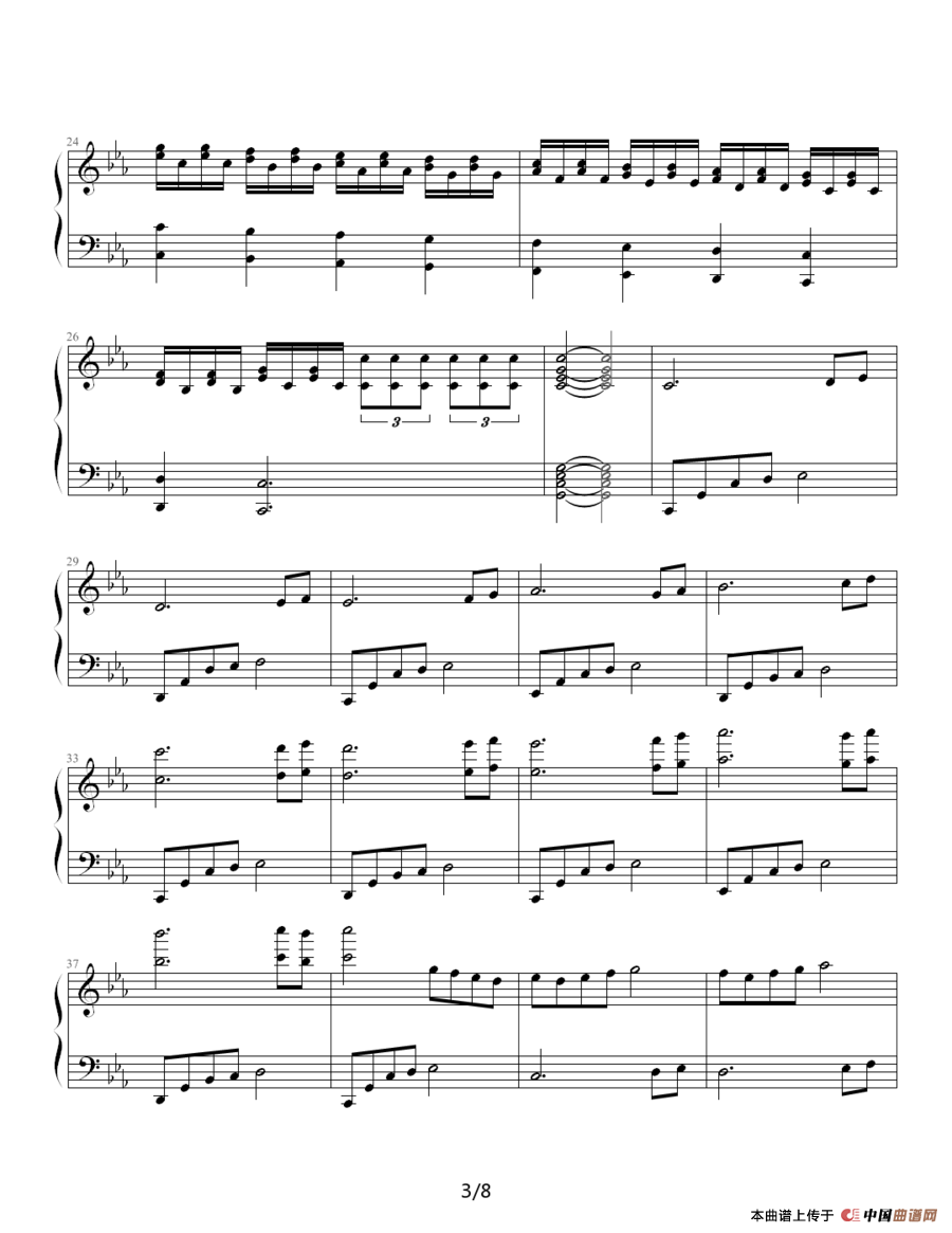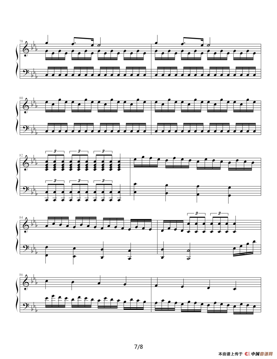 提示:在曲谱图片上单击右键,选择“图片另存为...”即可将曲谱保存到您的电脑中,打印时候可将图片插入到WORD中,调整合适大小打印即可。