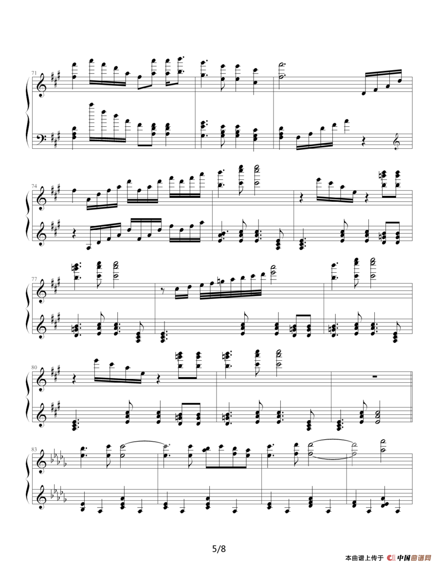 提示:在曲谱图片上单击右键,选择“图片另存为...”即可将曲谱保存到您的电脑中,打印时候可将图片插入到WORD中,调整合适大小打印即可。