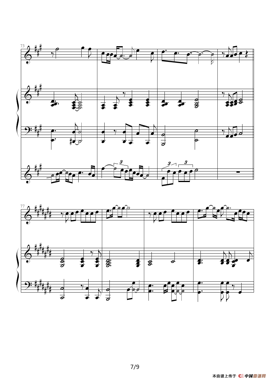 提示:在曲谱图片上单击右键,选择“图片另存为...”即可将曲谱保存到您的电脑中,打印时候可将图片插入到WORD中,调整合适大小打印即可。