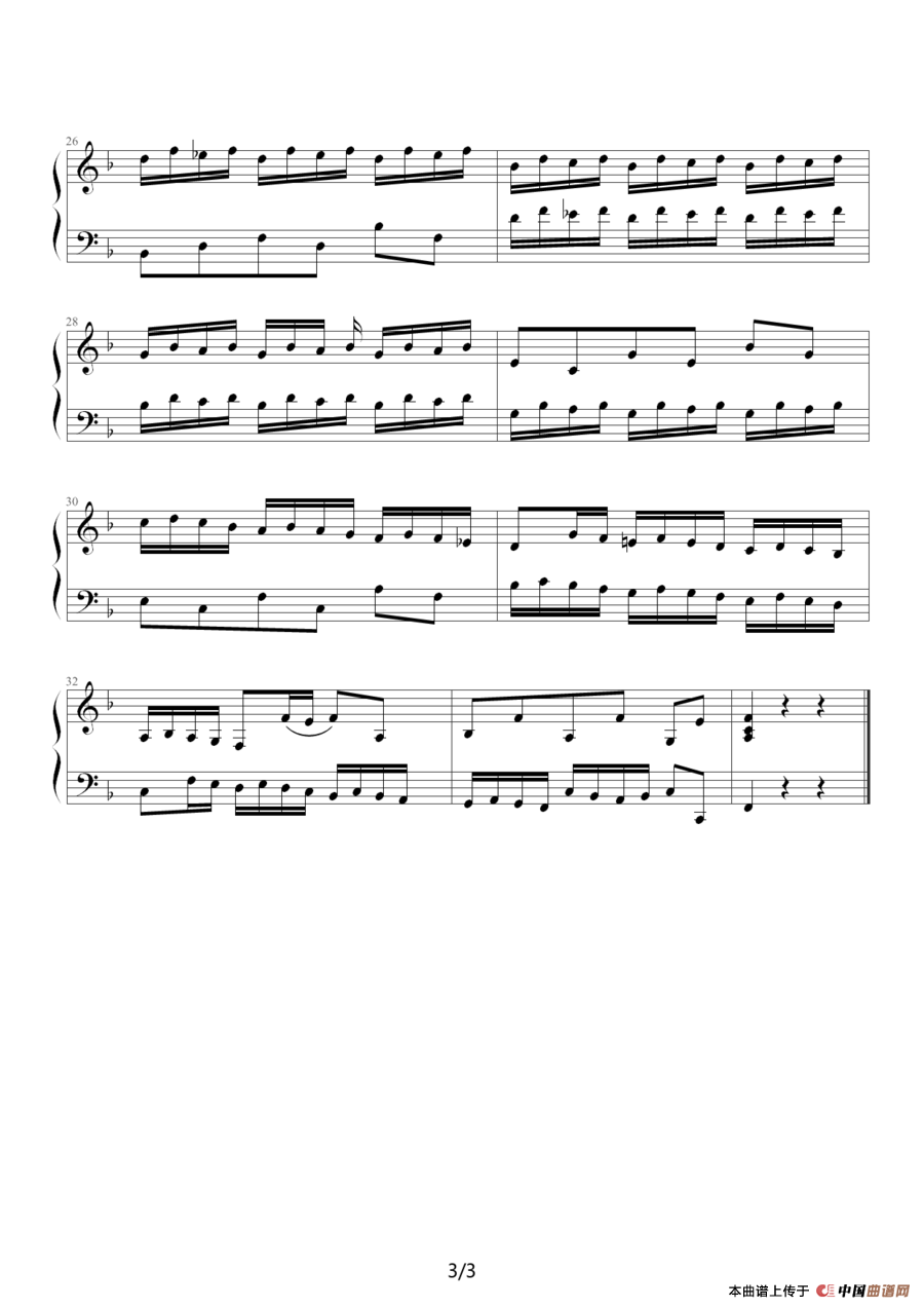 提示:在曲谱图片上单击右键,选择“图片另存为...”即可将曲谱保存到您的电脑中,打印时候可将图片插入到WORD中,调整合适大小打印即可。