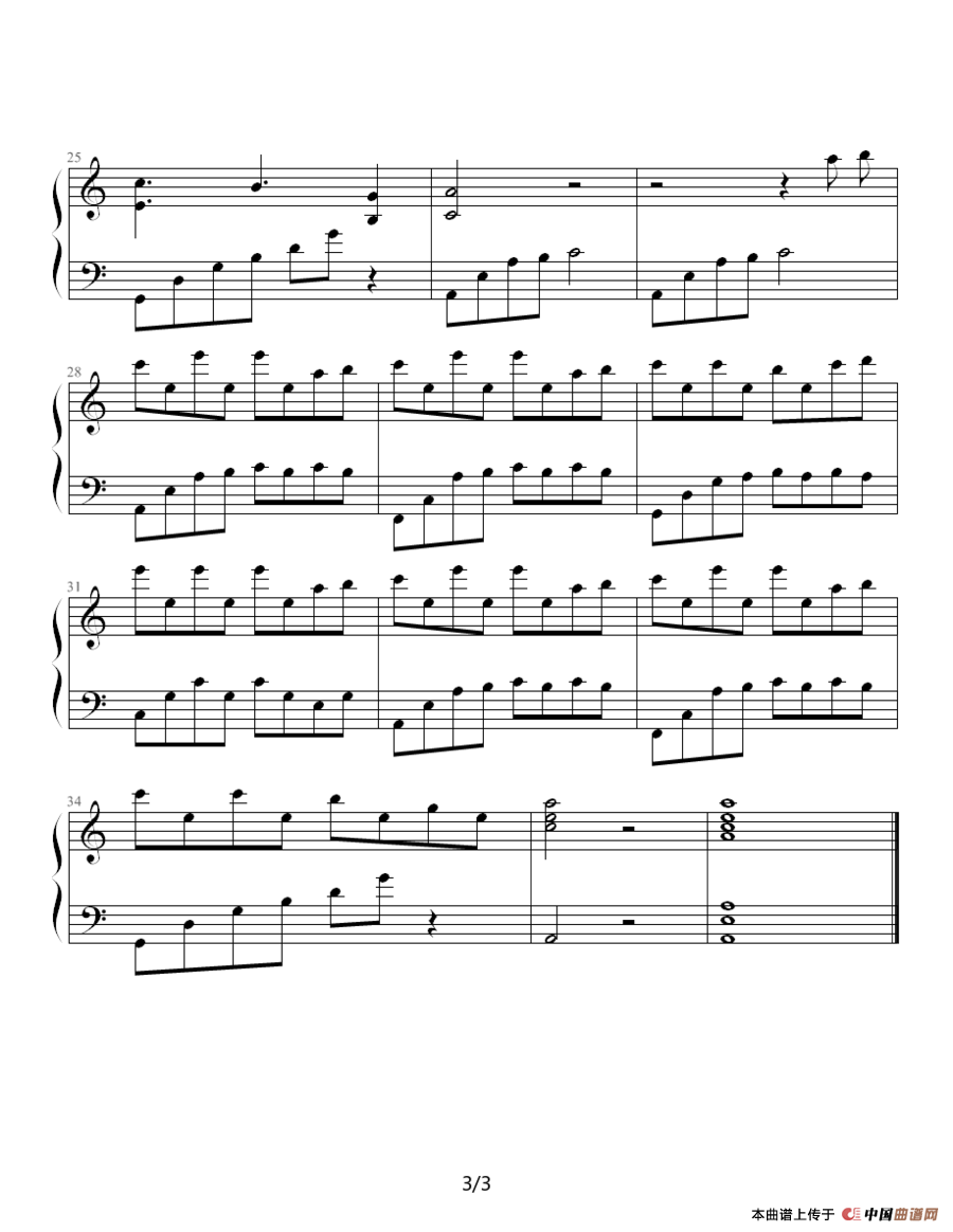 提示:在曲谱图片上单击右键,选择“图片另存为...”即可将曲谱保存到您的电脑中,打印时候可将图片插入到WORD中,调整合适大小打印即可。