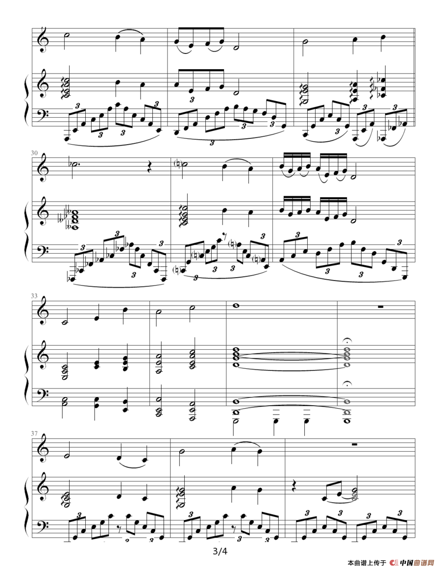 提示:在曲谱图片上单击右键,选择“图片另存为...”即可将曲谱保存到您的电脑中,打印时候可将图片插入到WORD中,调整合适大小打印即可。