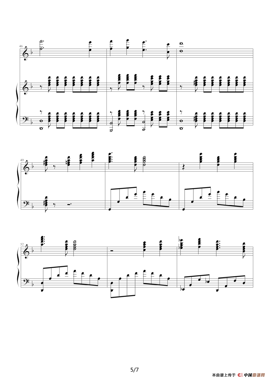 提示:在曲谱图片上单击右键,选择“图片另存为...”即可将曲谱保存到您的电脑中,打印时候可将图片插入到WORD中,调整合适大小打印即可。