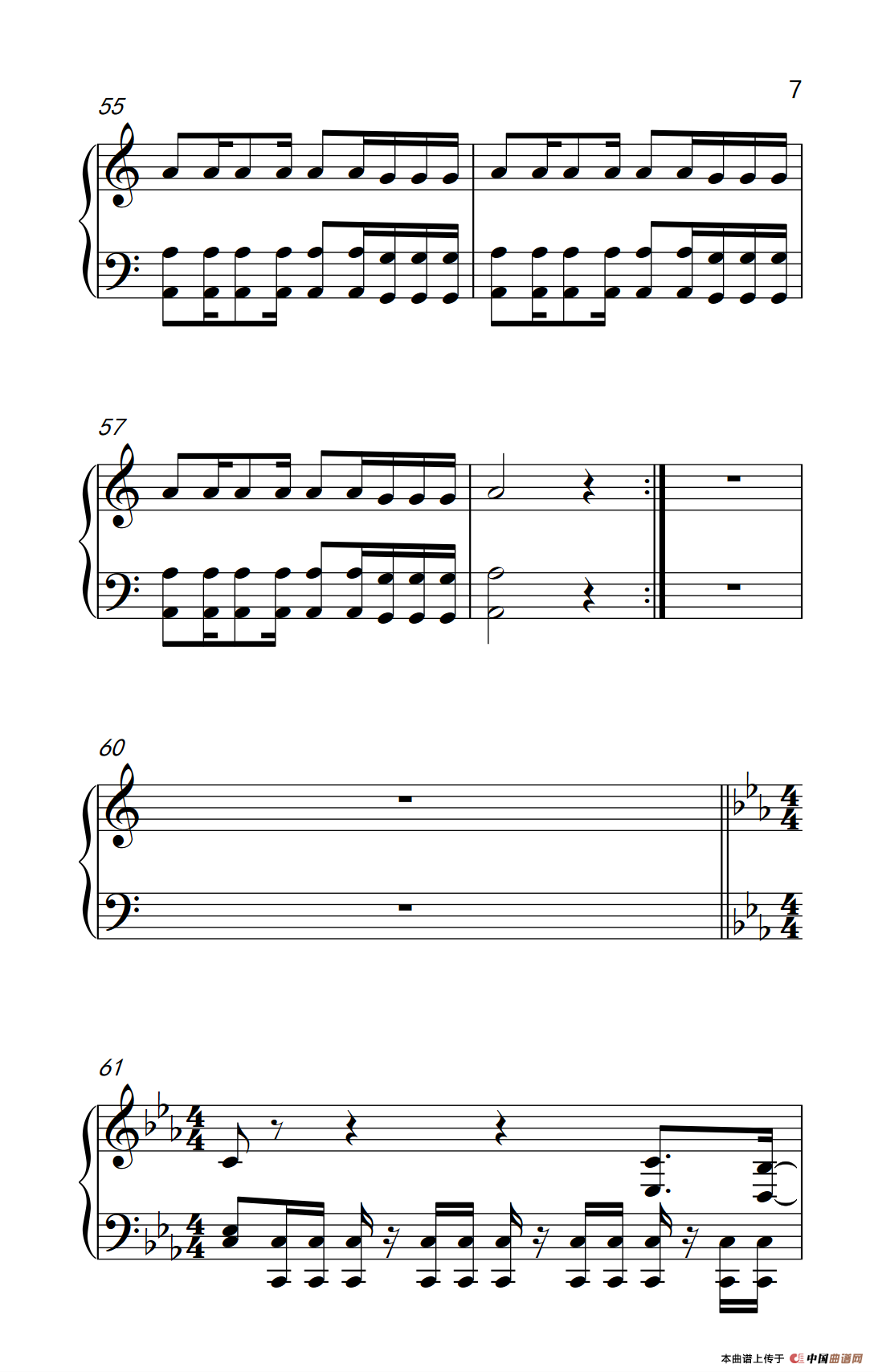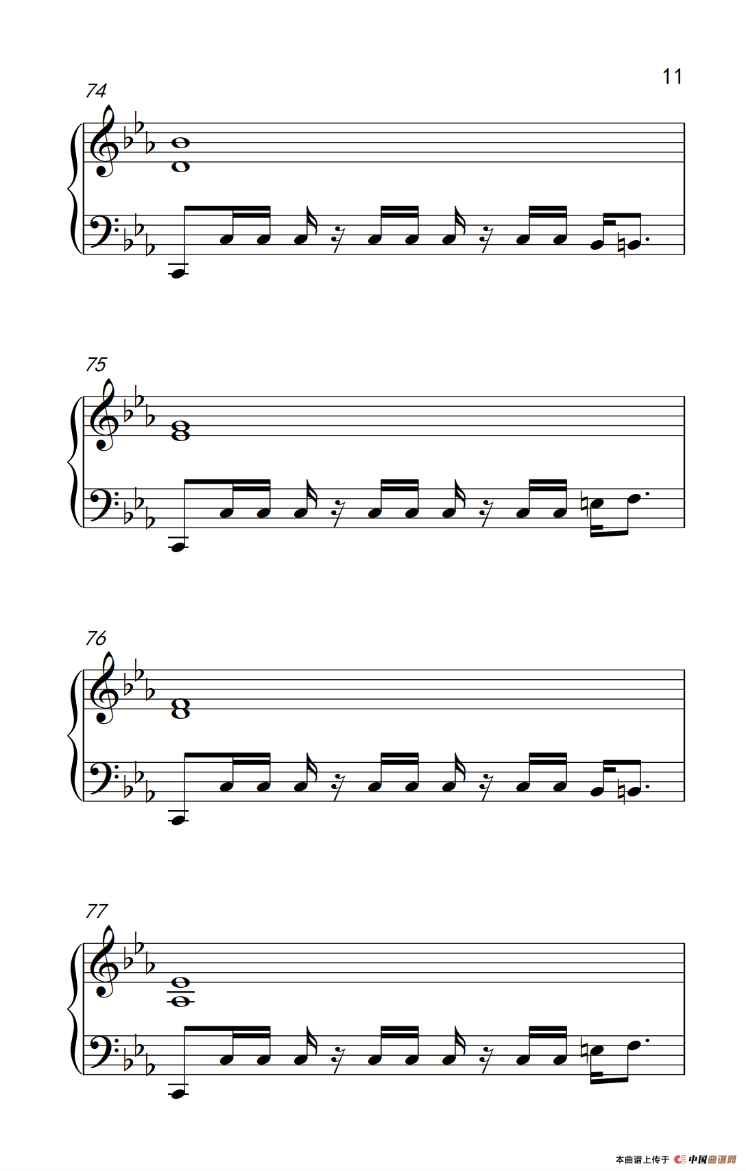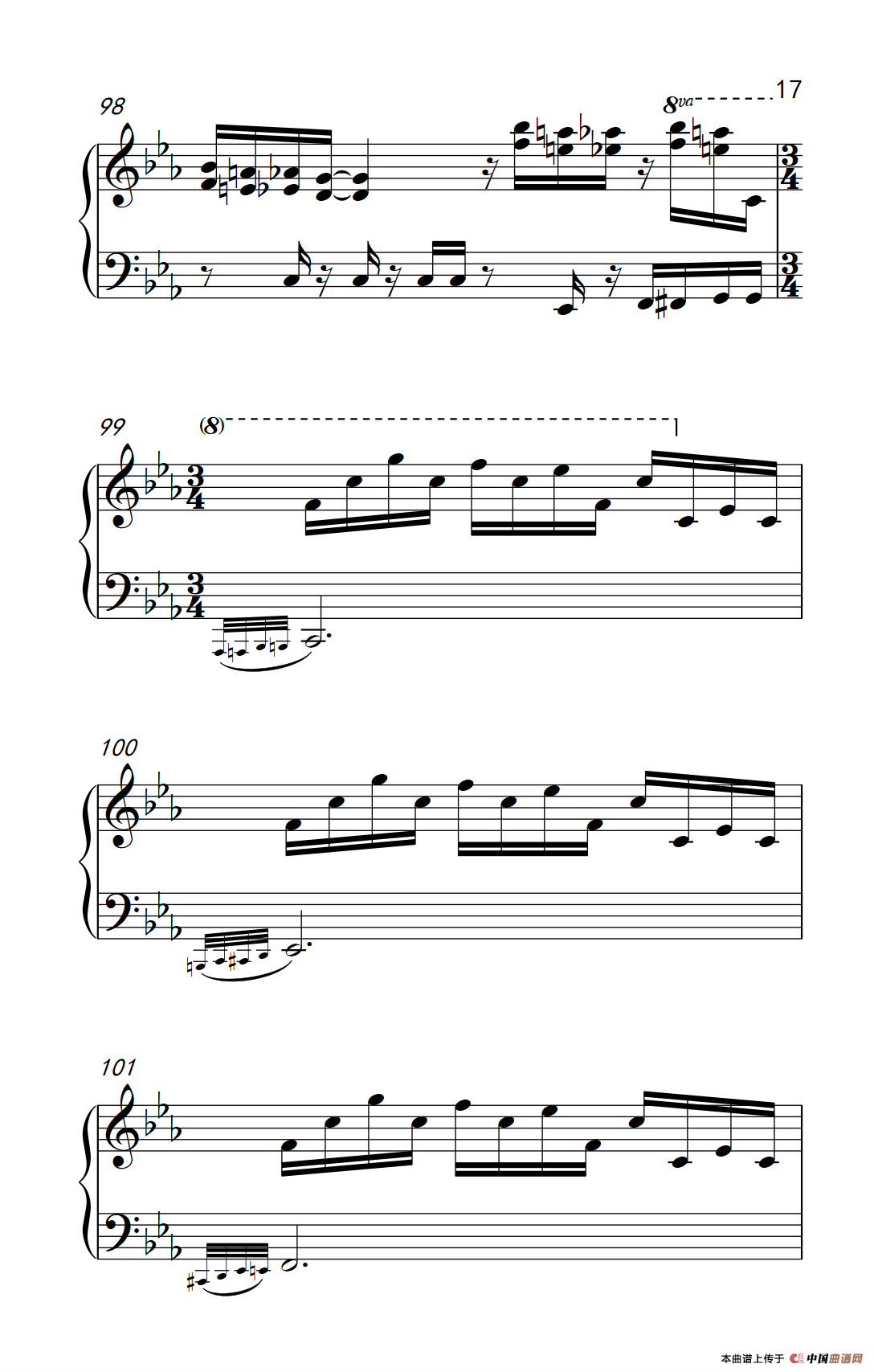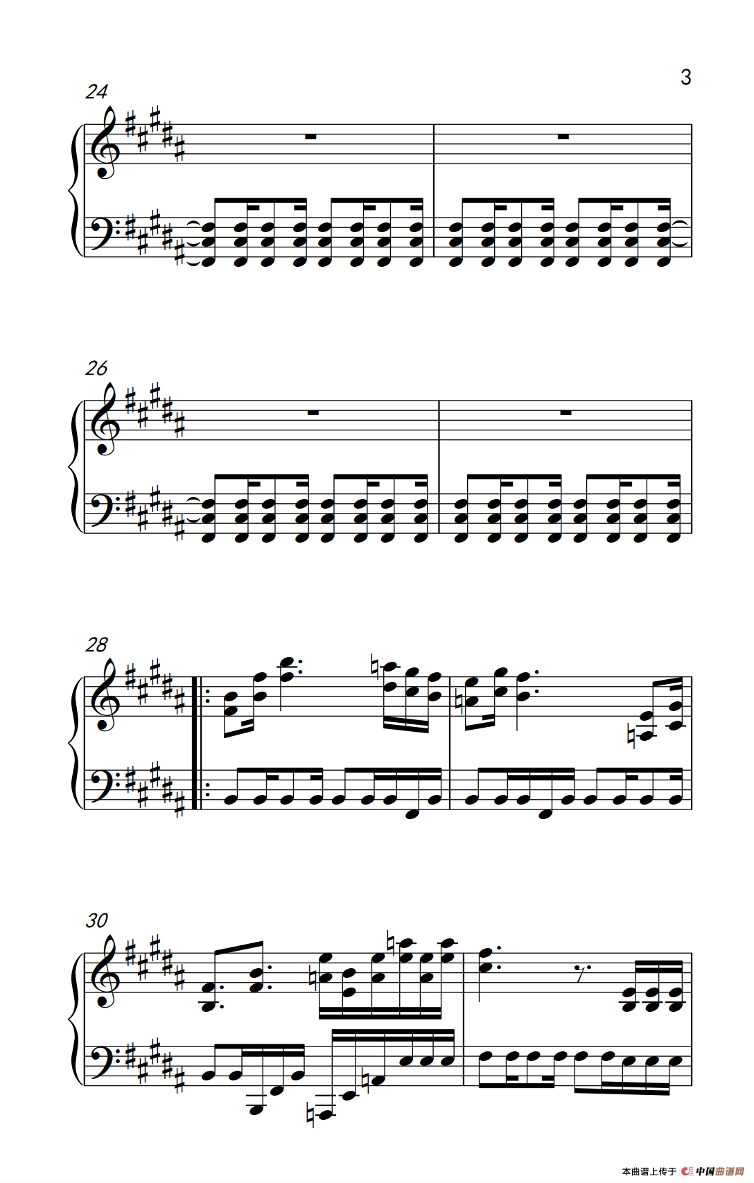 提示:在曲谱图片上单击右键,选择“图片另存为...”即可将曲谱保存到您的电脑中,打印时候可将图片插入到WORD中,调整合适大小打印即可。