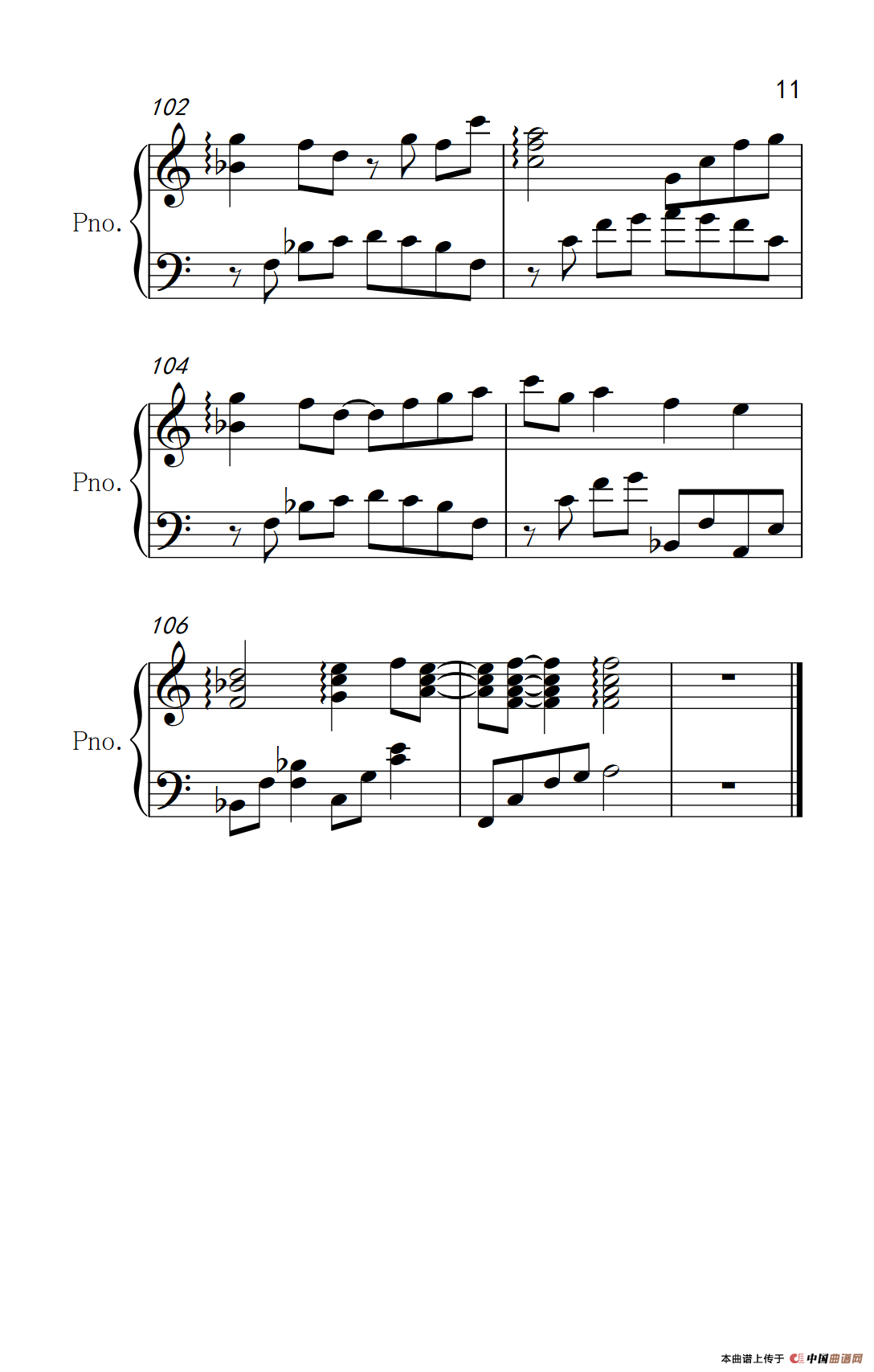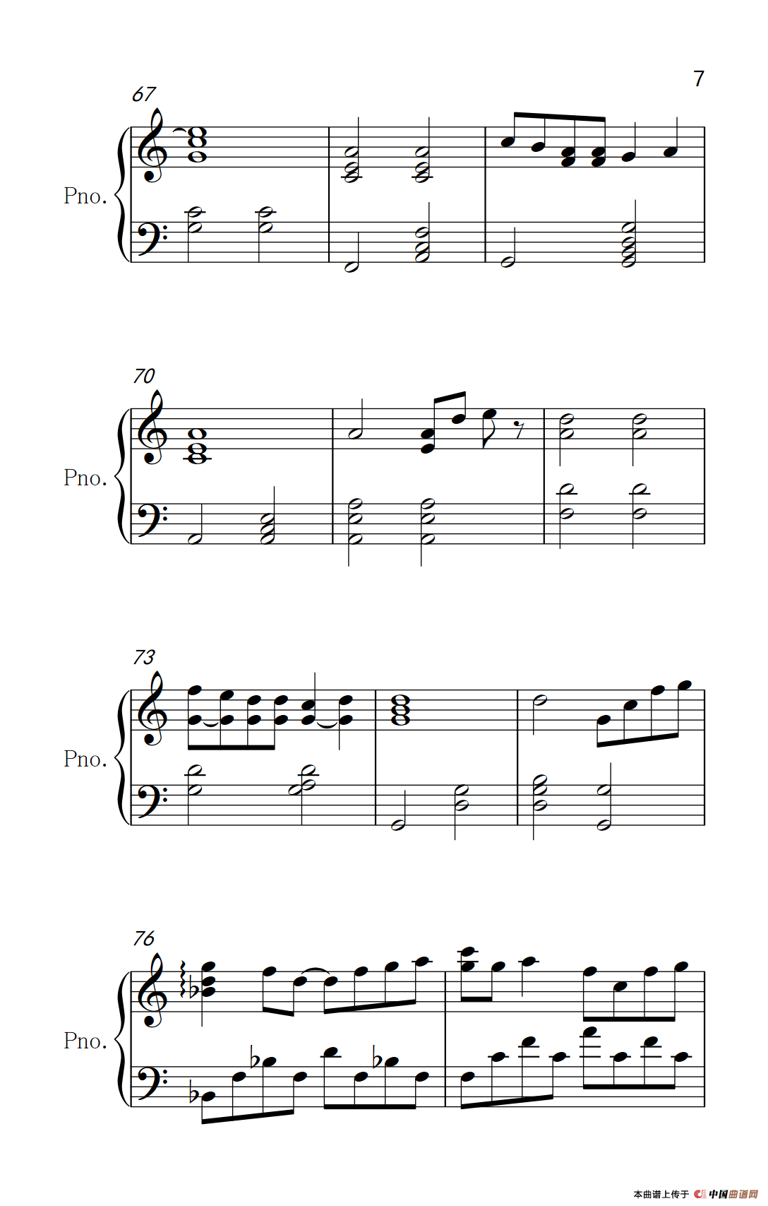 提示:在曲谱图片上单击右键,选择“图片另存为...”即可将曲谱保存到您的电脑中,打印时候可将图片插入到WORD中,调整合适大小打印即可。