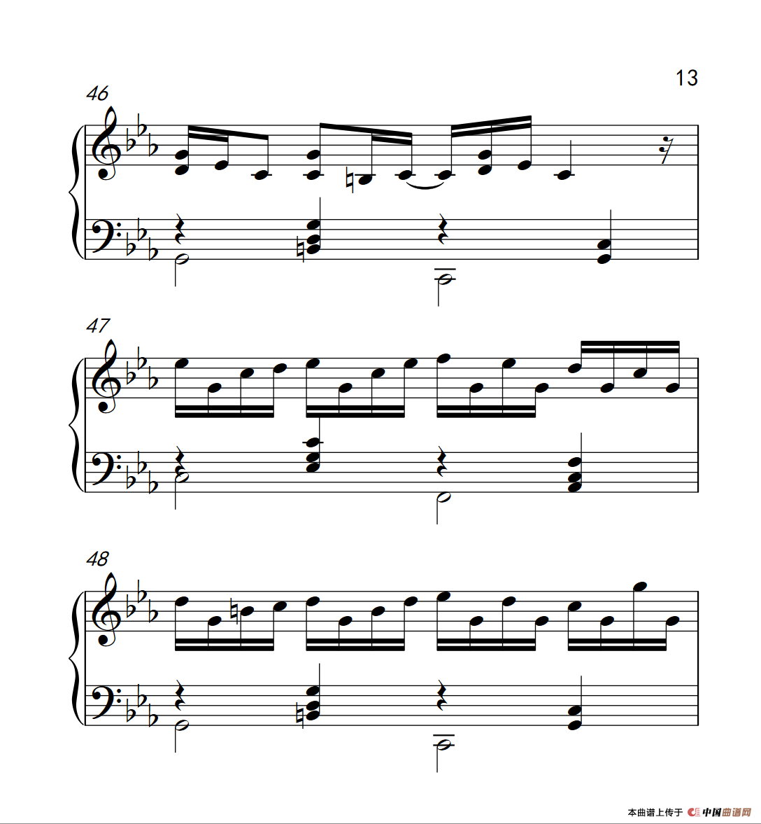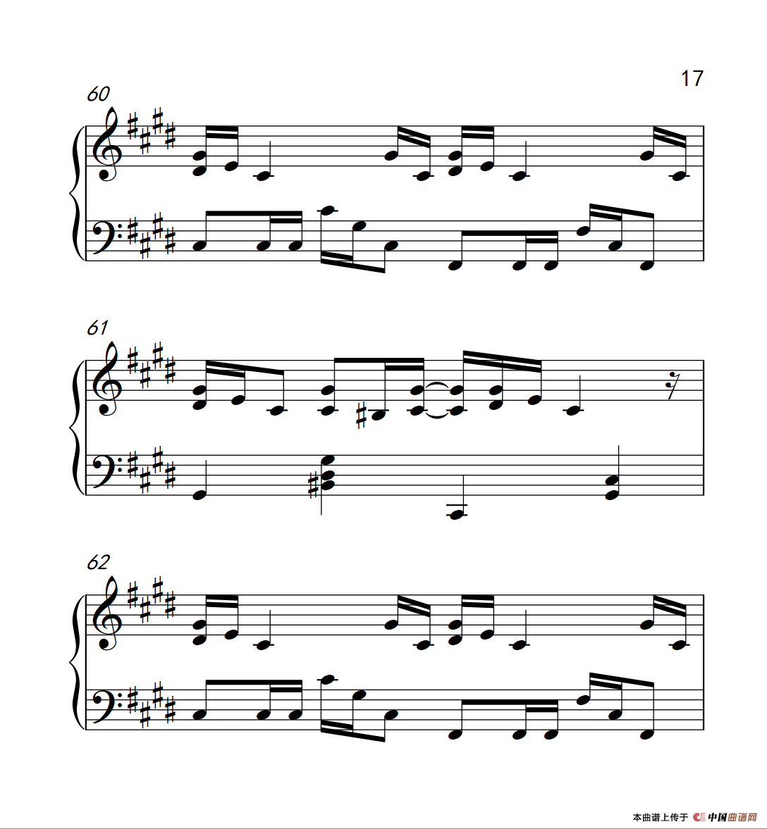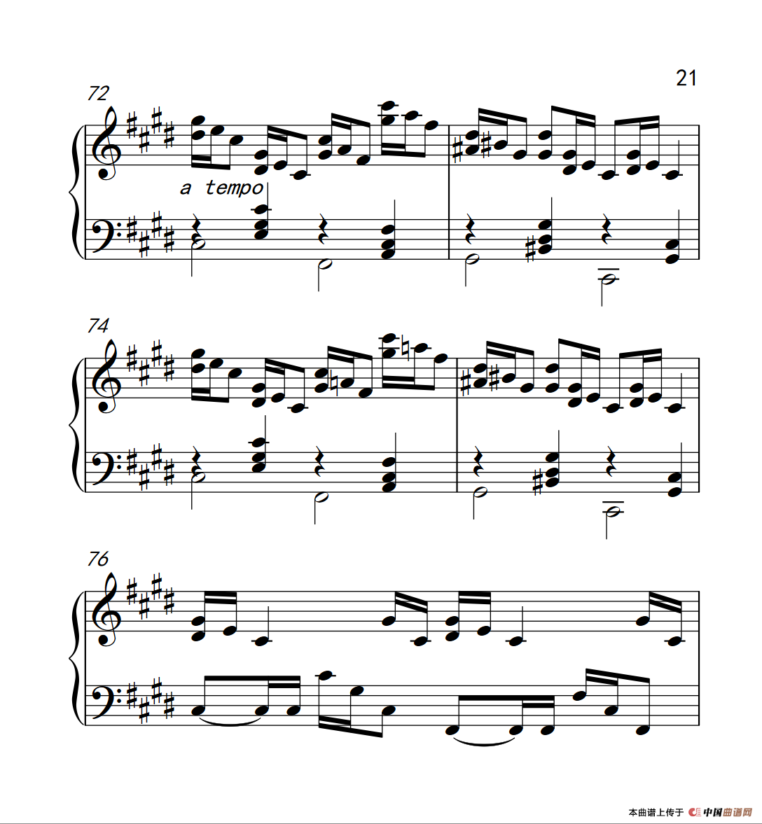 提示:在曲谱图片上单击右键,选择“图片另存为...”即可将曲谱保存到您的电脑中,打印时候可将图片插入到WORD中,调整合适大小打印即可。