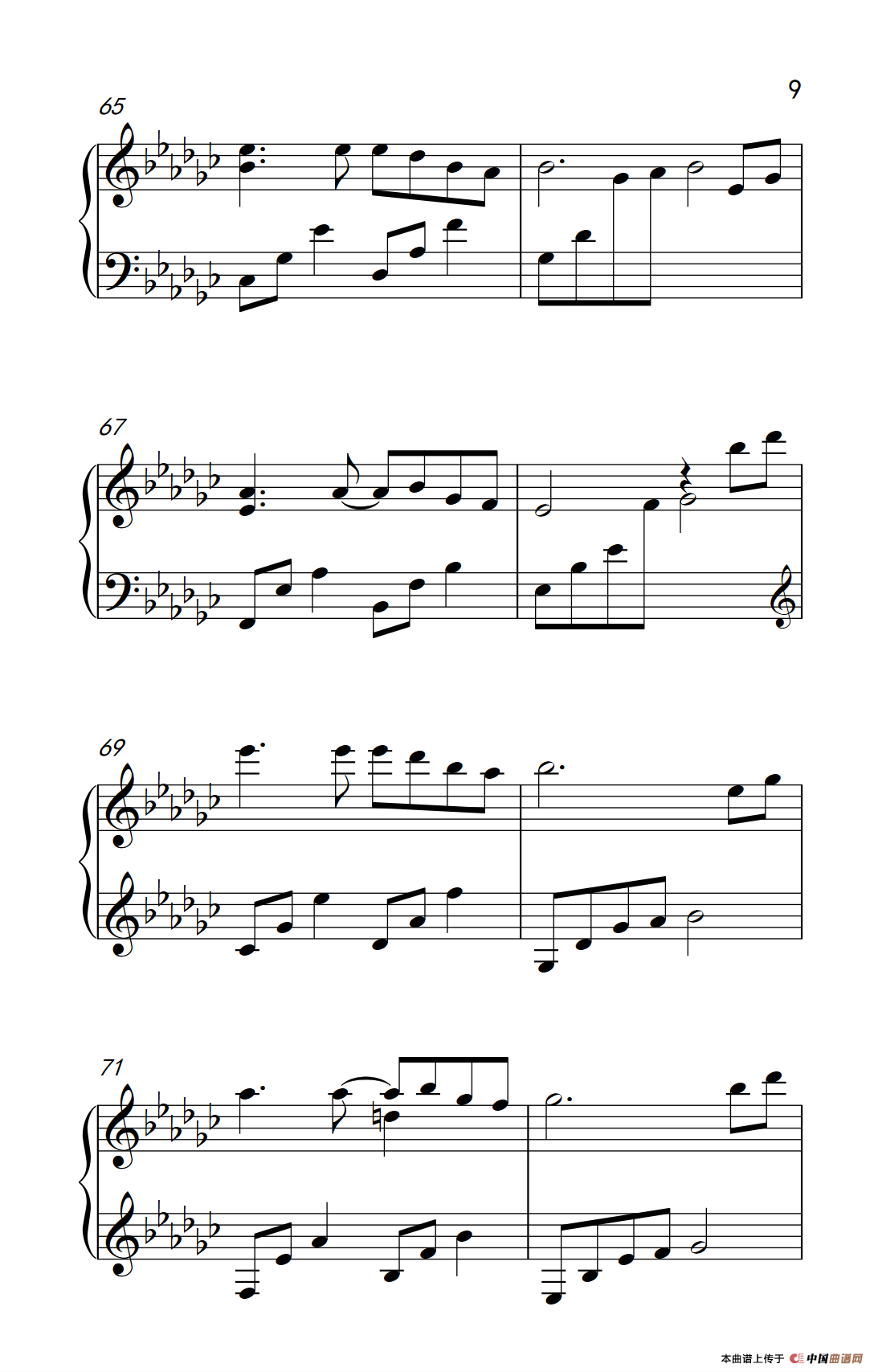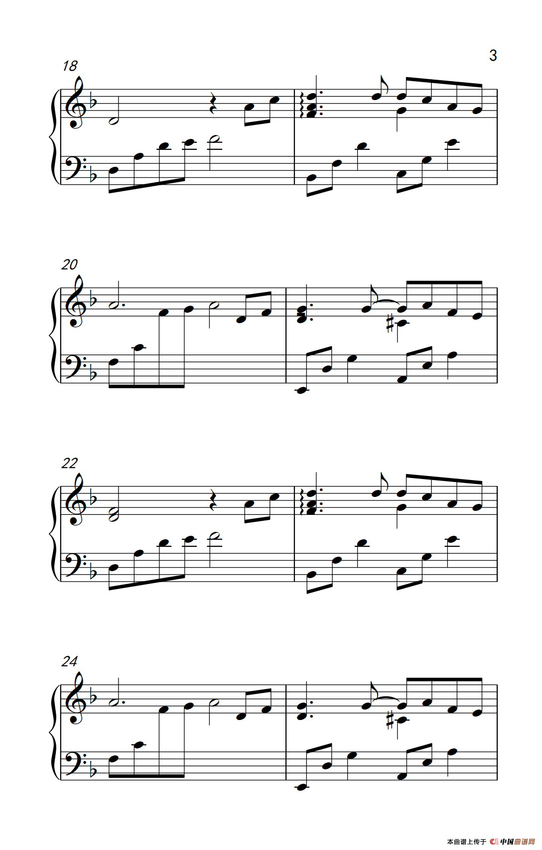 提示:在曲谱图片上单击右键,选择“图片另存为...”即可将曲谱保存到您的电脑中,打印时候可将图片插入到WORD中,调整合适大小打印即可。
