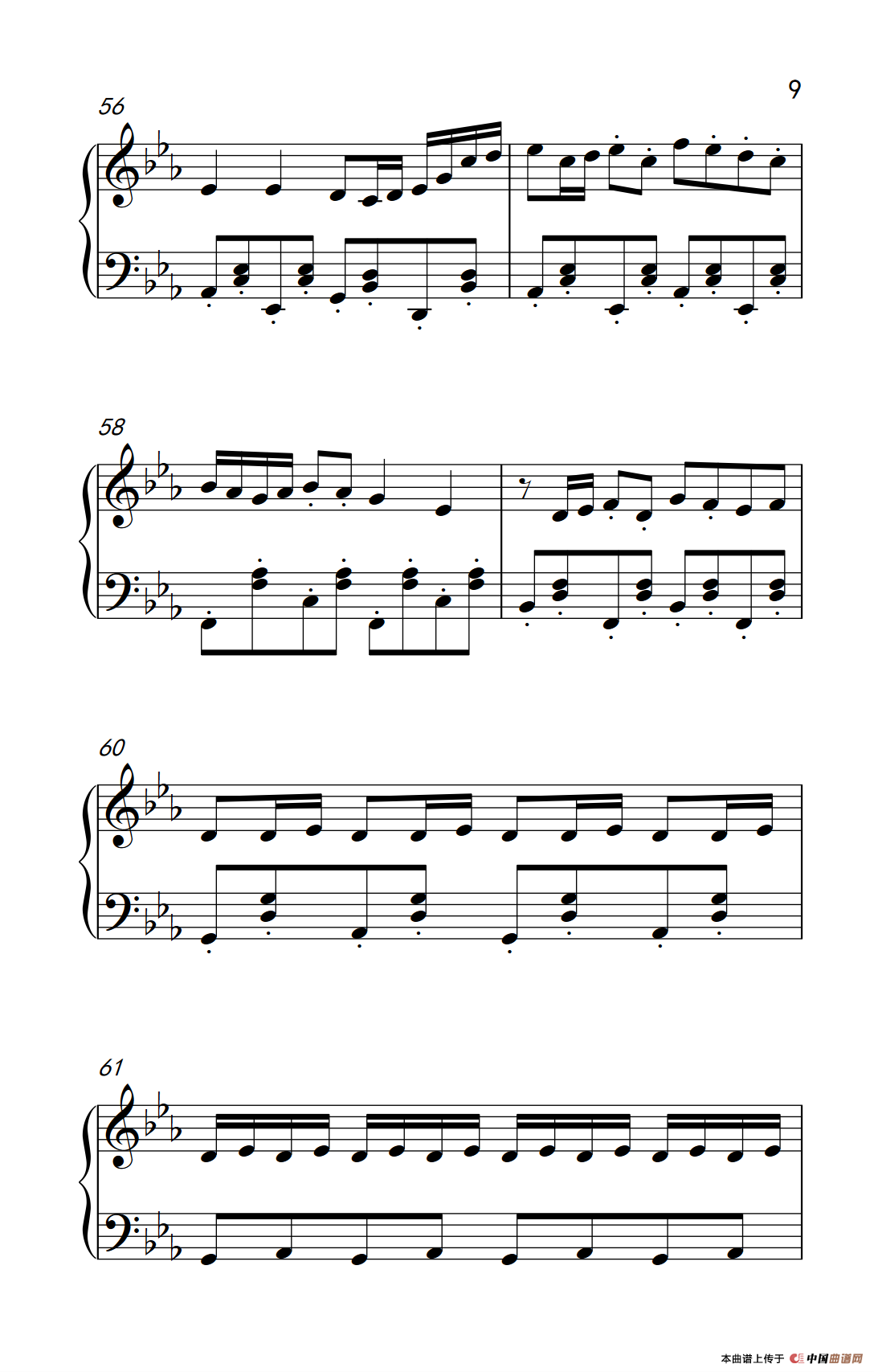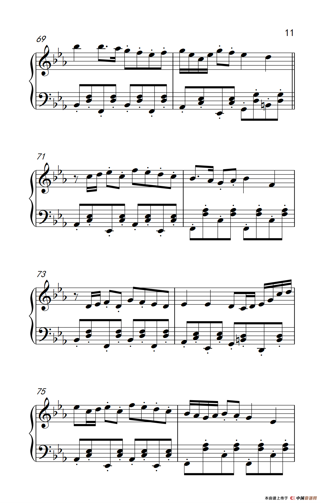 提示:在曲谱图片上单击右键,选择“图片另存为...”即可将曲谱保存到您的电脑中,打印时候可将图片插入到WORD中,调整合适大小打印即可。