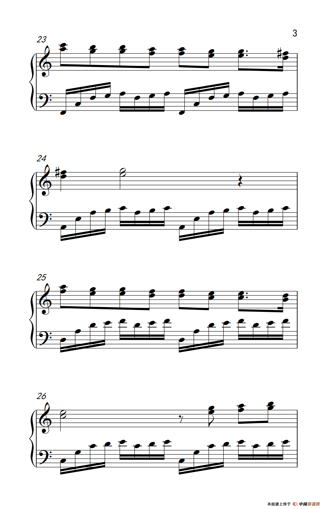 提示:在曲谱图片上单击右键,选择“图片另存为...”即可将曲谱保存到您的电脑中,打印时候可将图片插入到WORD中,调整合适大小打印即可。