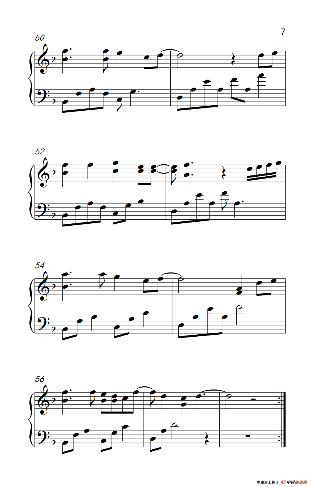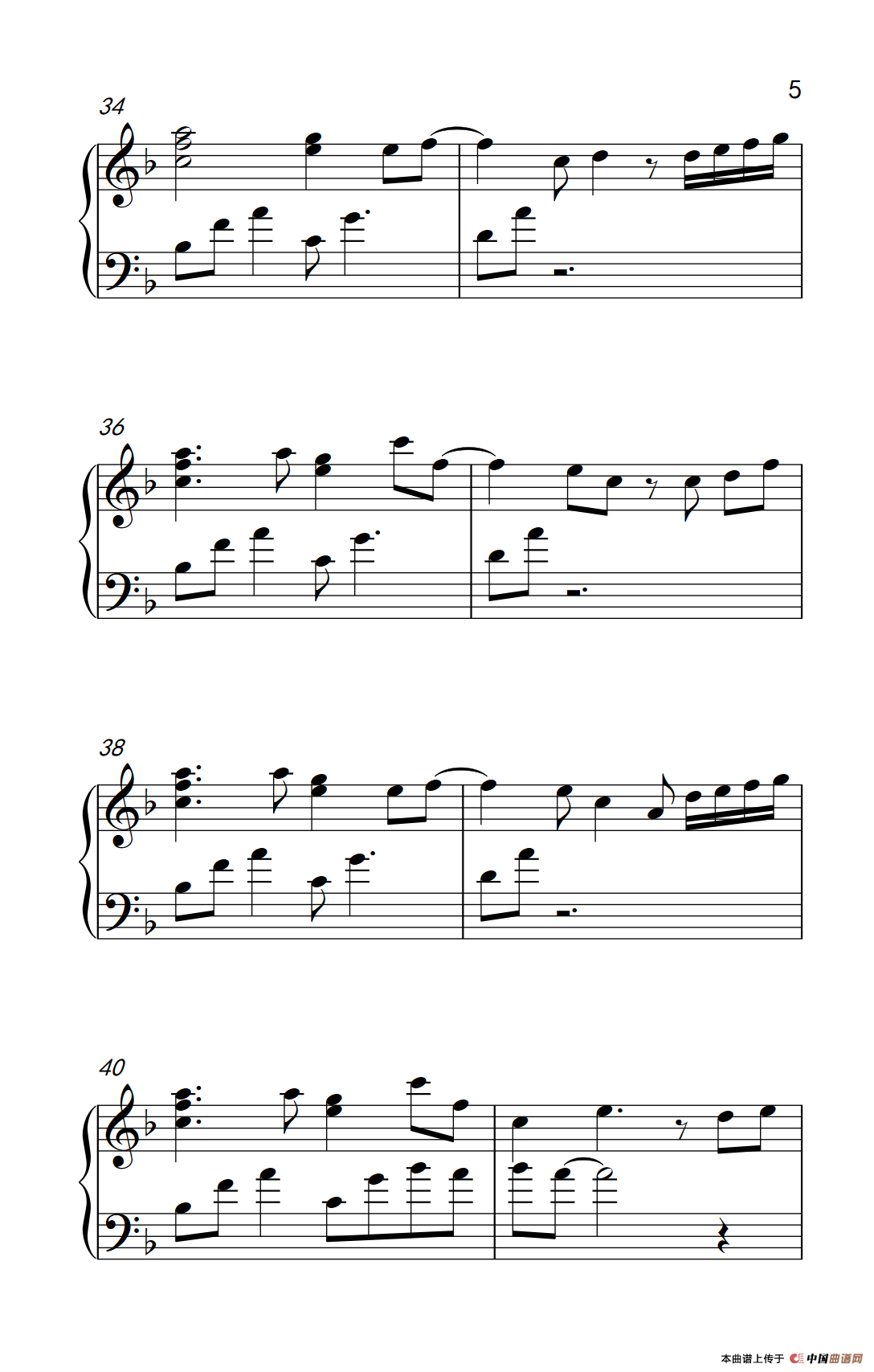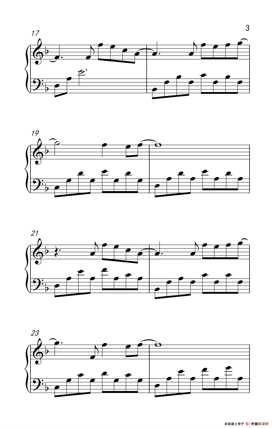 提示:在曲谱图片上单击右键,选择“图片另存为...”即可将曲谱保存到您的电脑中,打印时候可将图片插入到WORD中,调整合适大小打印即可。