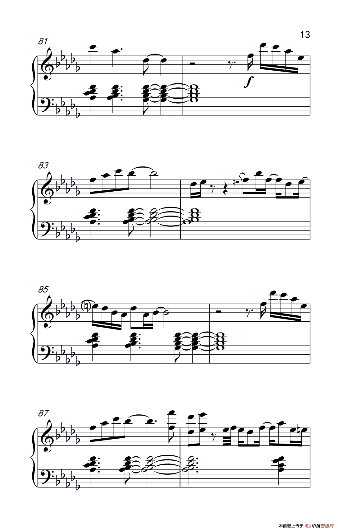 提示:在曲谱图片上单击右键,选择“图片另存为...”即可将曲谱保存到您的电脑中,打印时候可将图片插入到WORD中,调整合适大小打印即可。