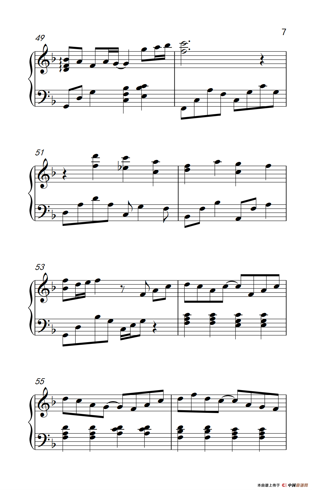 提示:在曲谱图片上单击右键,选择“图片另存为...”即可将曲谱保存到您的电脑中,打印时候可将图片插入到WORD中,调整合适大小打印即可。