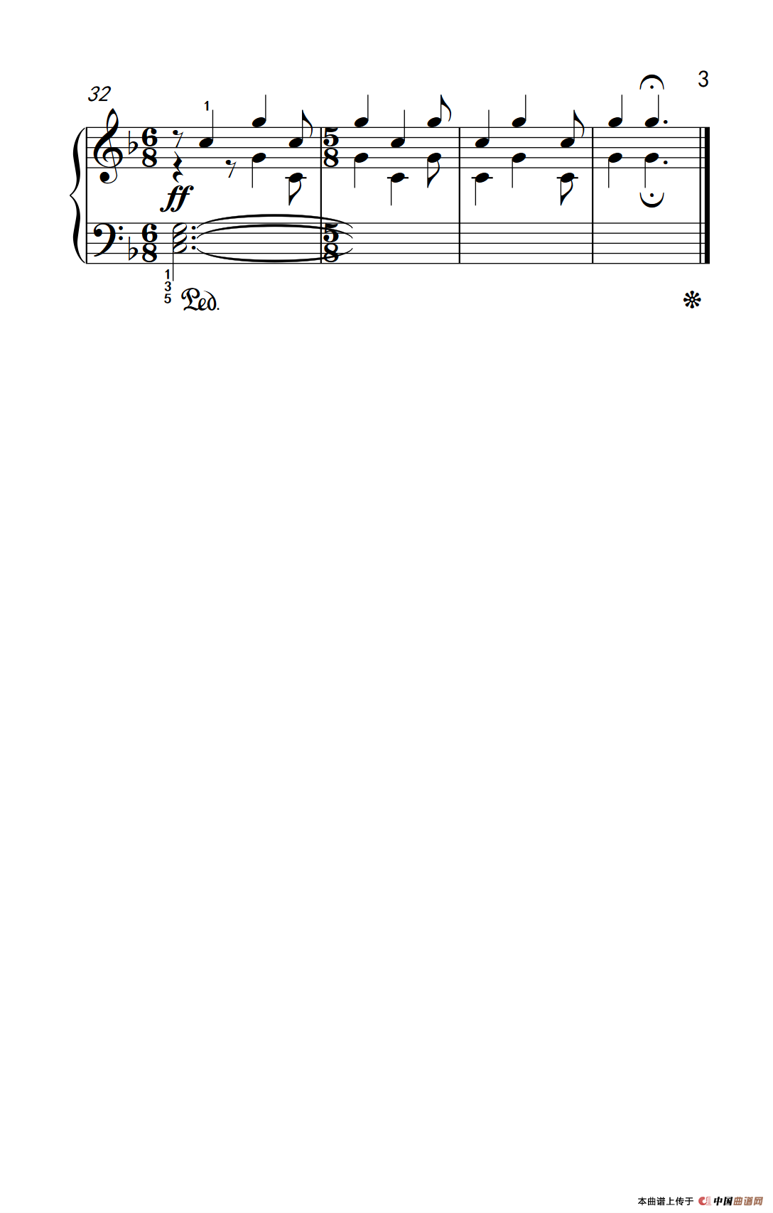 提示:在曲谱图片上单击右键,选择“图片另存为...”即可将曲谱保存到您的电脑中,打印时候可将图片插入到WORD中,调整合适大小打印即可。
