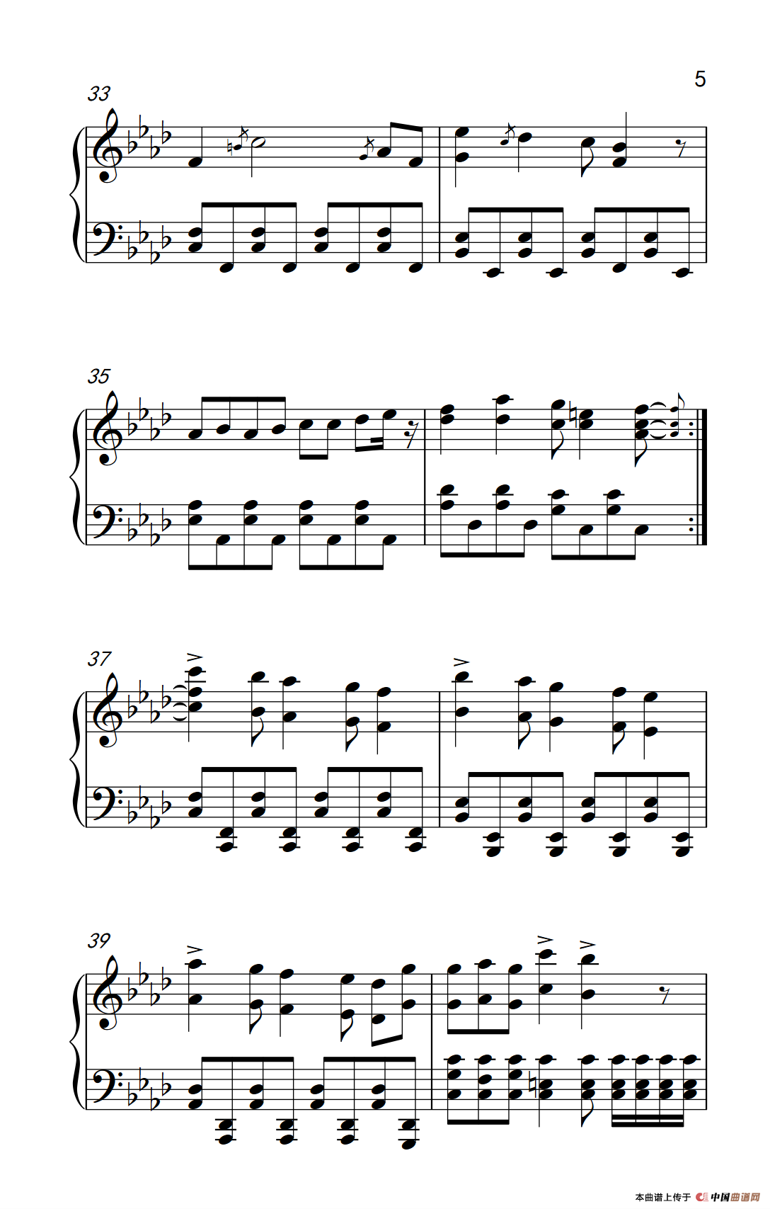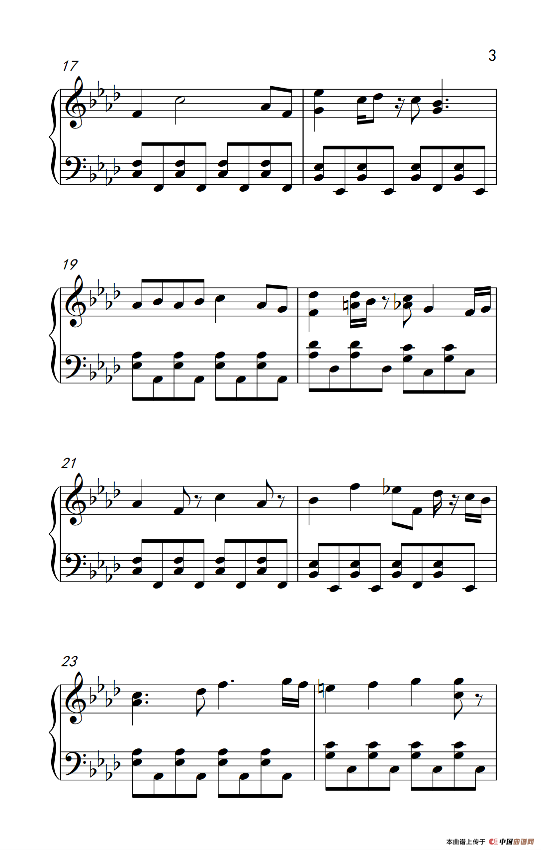 提示:在曲谱图片上单击右键,选择“图片另存为...”即可将曲谱保存到您的电脑中,打印时候可将图片插入到WORD中,调整合适大小打印即可。