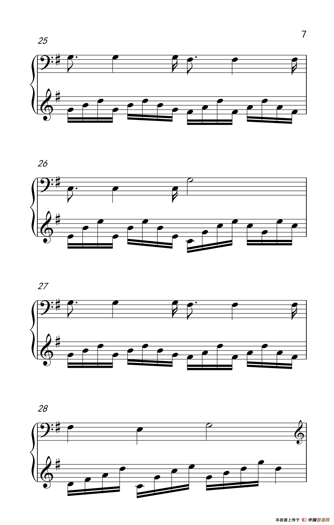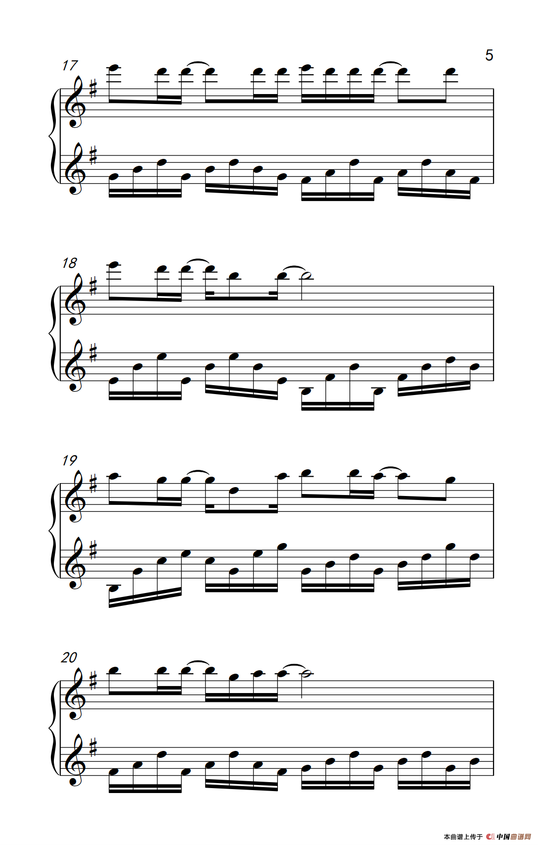 提示:在曲谱图片上单击右键,选择“图片另存为...”即可将曲谱保存到您的电脑中,打印时候可将图片插入到WORD中,调整合适大小打印即可。