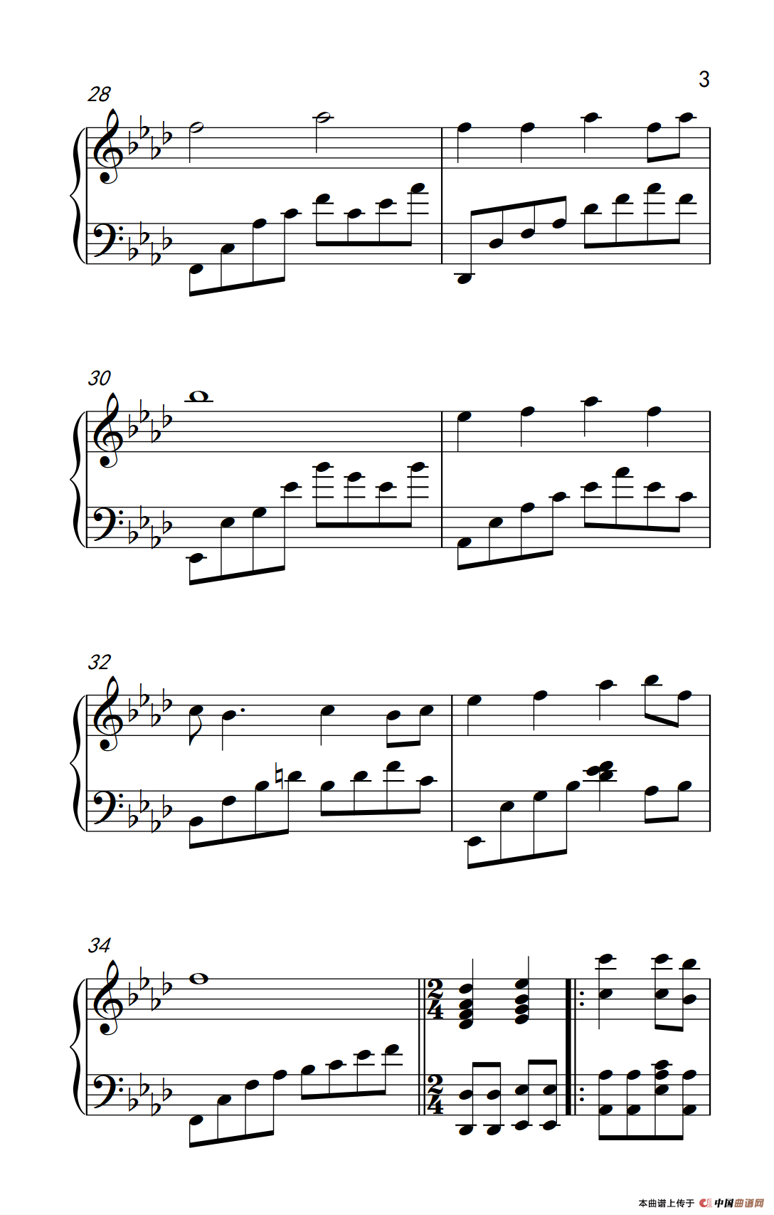 提示:在曲谱图片上单击右键,选择“图片另存为...”即可将曲谱保存到您的电脑中,打印时候可将图片插入到WORD中,调整合适大小打印即可。