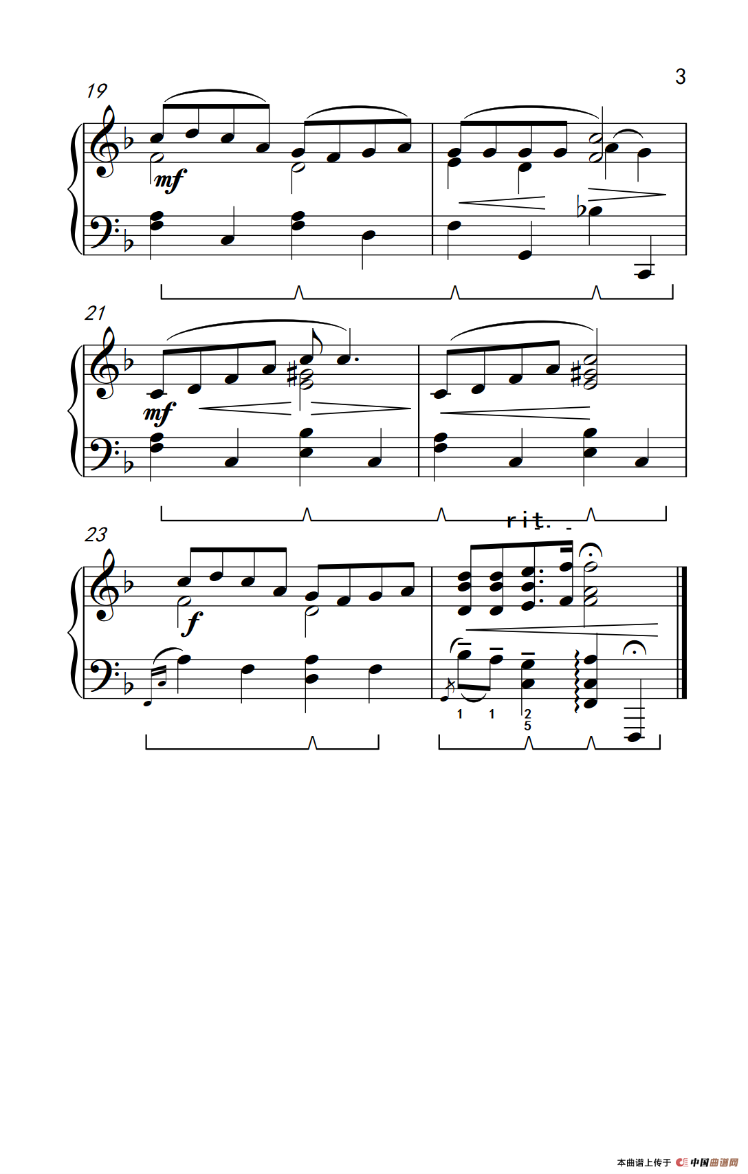 提示:在曲谱图片上单击右键,选择“图片另存为...”即可将曲谱保存到您的电脑中,打印时候可将图片插入到WORD中,调整合适大小打印即可。