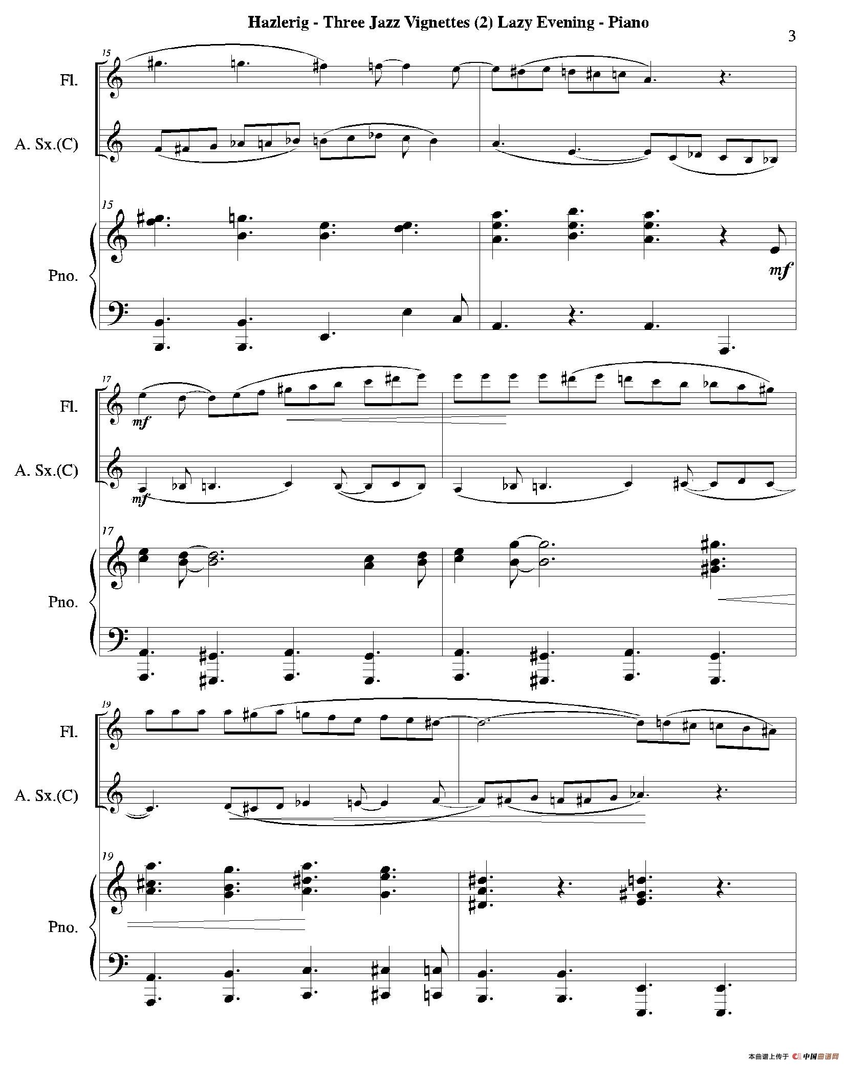 Three jazz vignettes(第二乐章)(三重奏钢琴分谱)