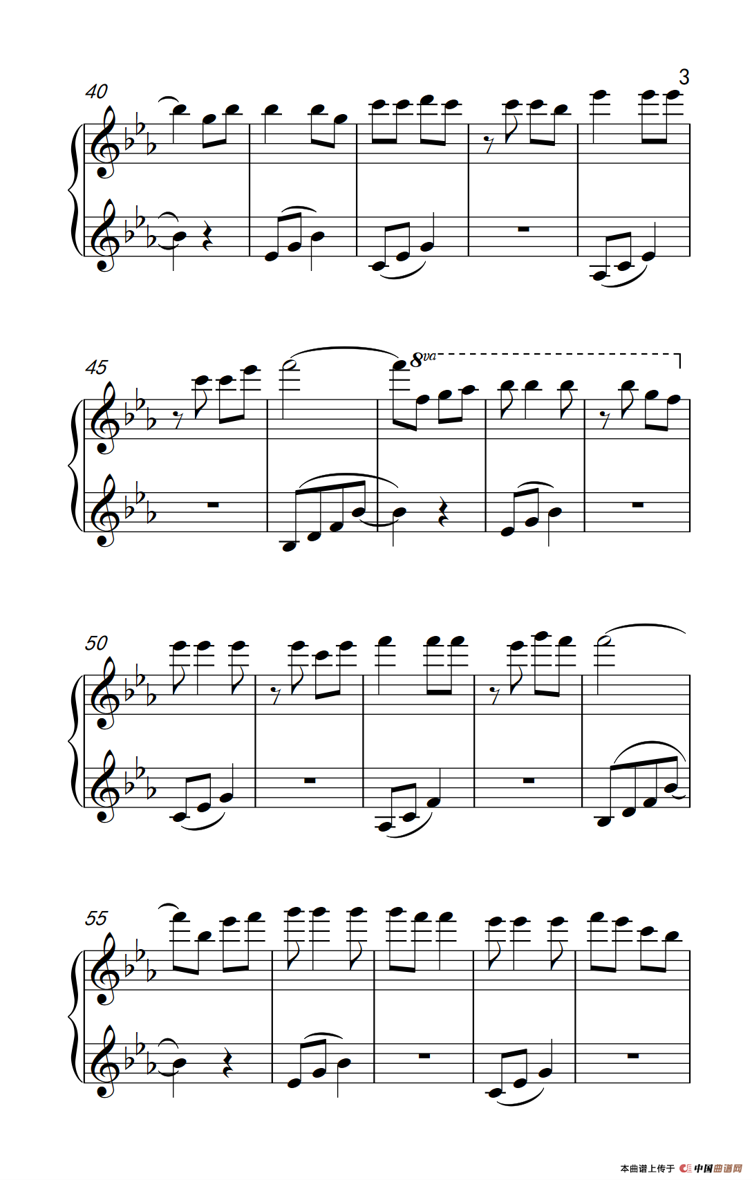 提示:在曲谱图片上单击右键,选择“图片另存为...”即可将曲谱保存到您的电脑中,打印时候可将图片插入到WORD中,调整合适大小打印即可。