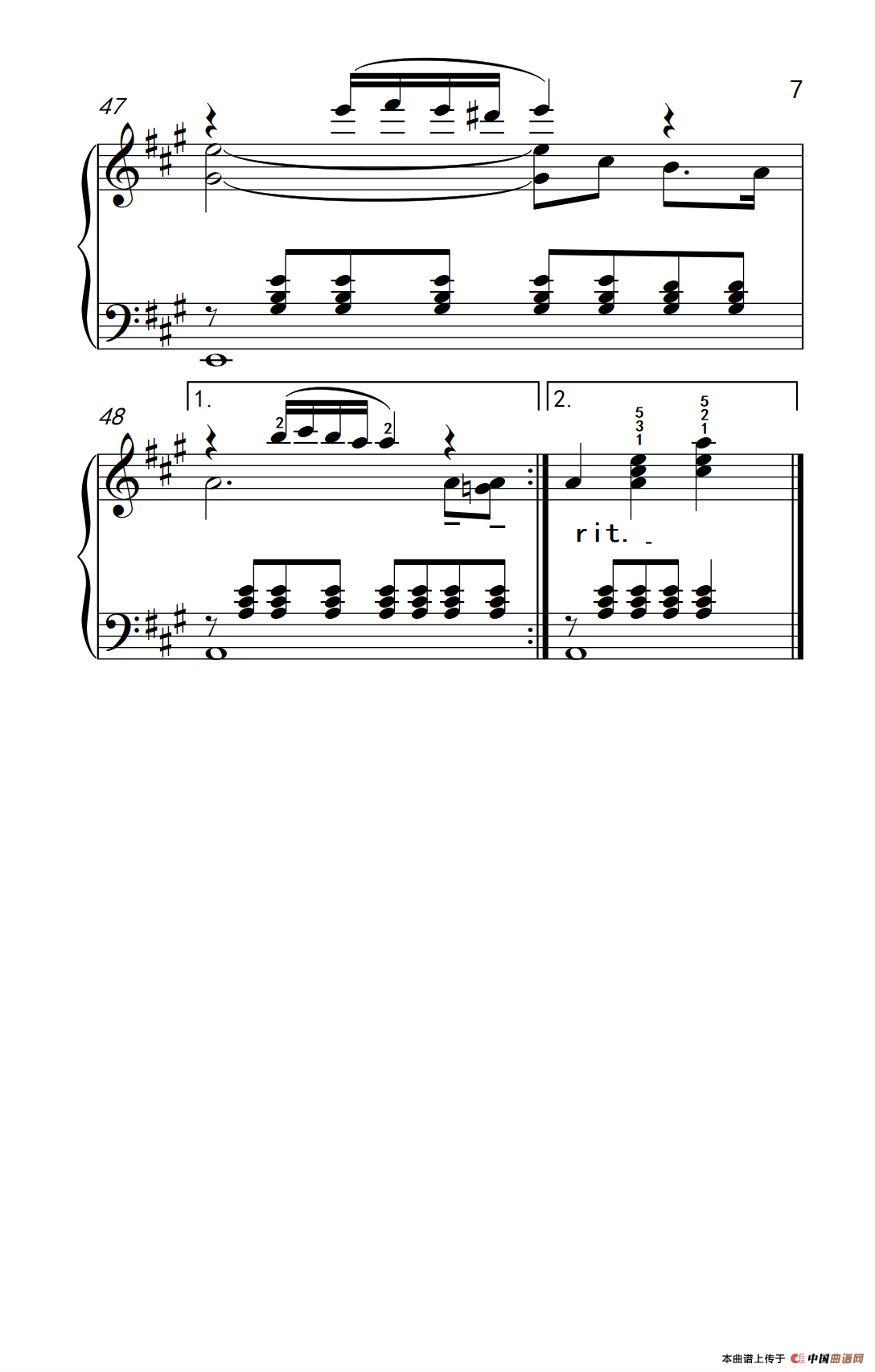 提示:在曲谱图片上单击右键,选择“图片另存为...”即可将曲谱保存到您的电脑中,打印时候可将图片插入到WORD中,调整合适大小打印即可。