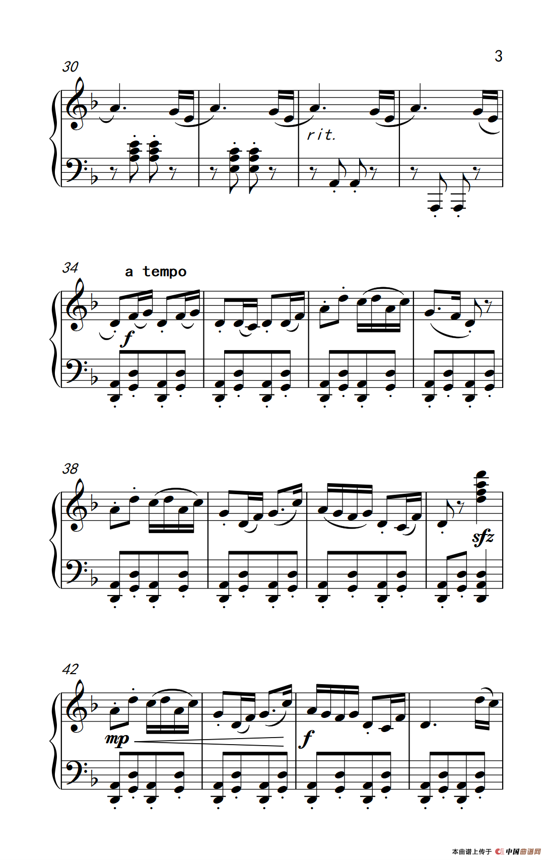 提示:在曲谱图片上单击右键,选择“图片另存为...”即可将曲谱保存到您的电脑中,打印时候可将图片插入到WORD中,调整合适大小打印即可。