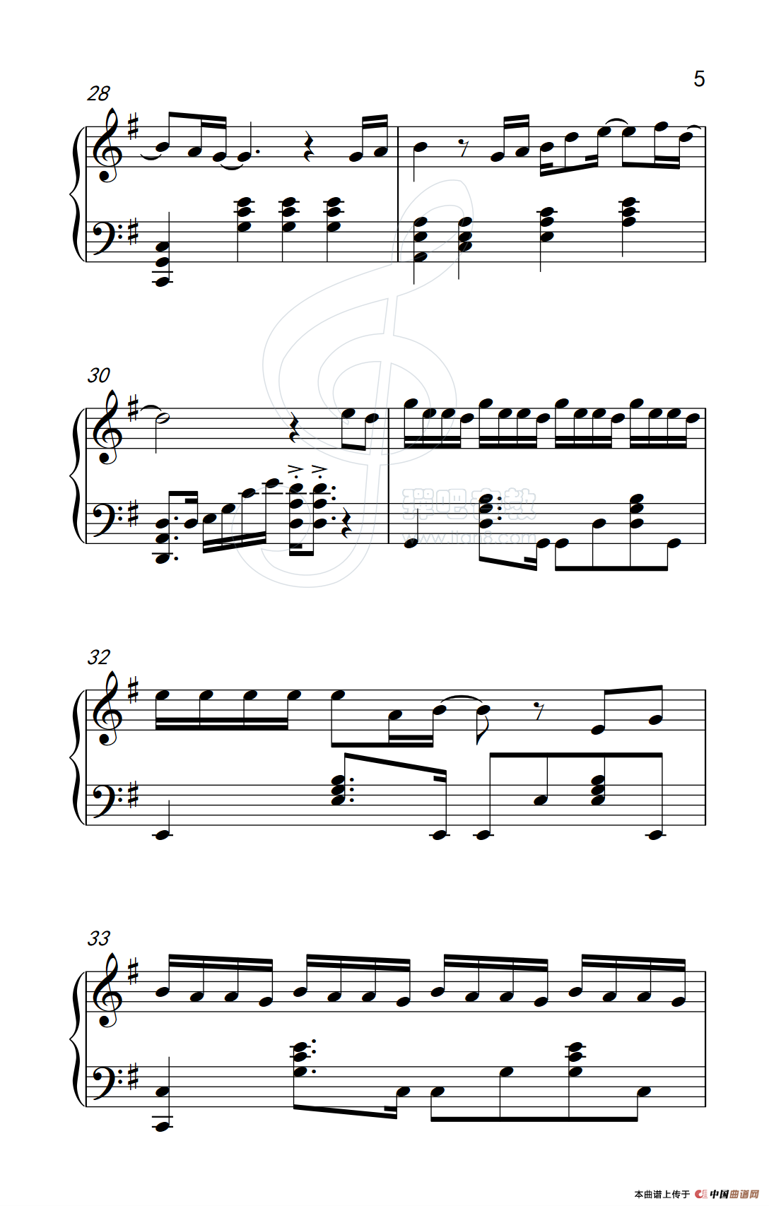提示:在曲谱图片上单击右键,选择“图片另存为...”即可将曲谱保存到您的电脑中,打印时候可将图片插入到WORD中,调整合适大小打印即可。