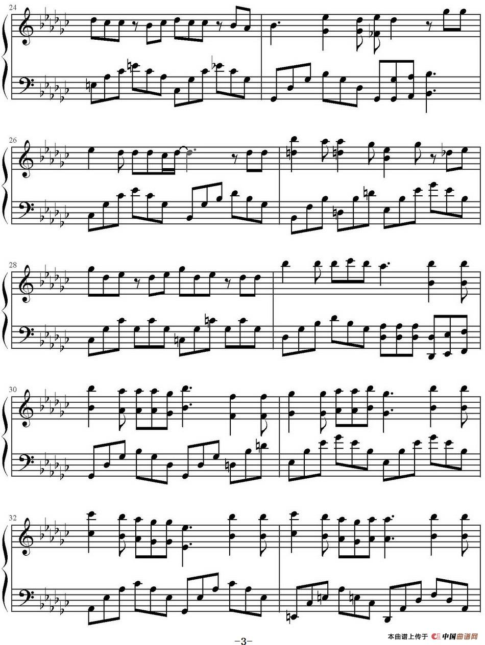 提示:在曲谱图片上单击右键,选择“图片另存为...”即可将曲谱保存到您的电脑中,打印时候可将图片插入到WORD中,调整合适大小打印即可。