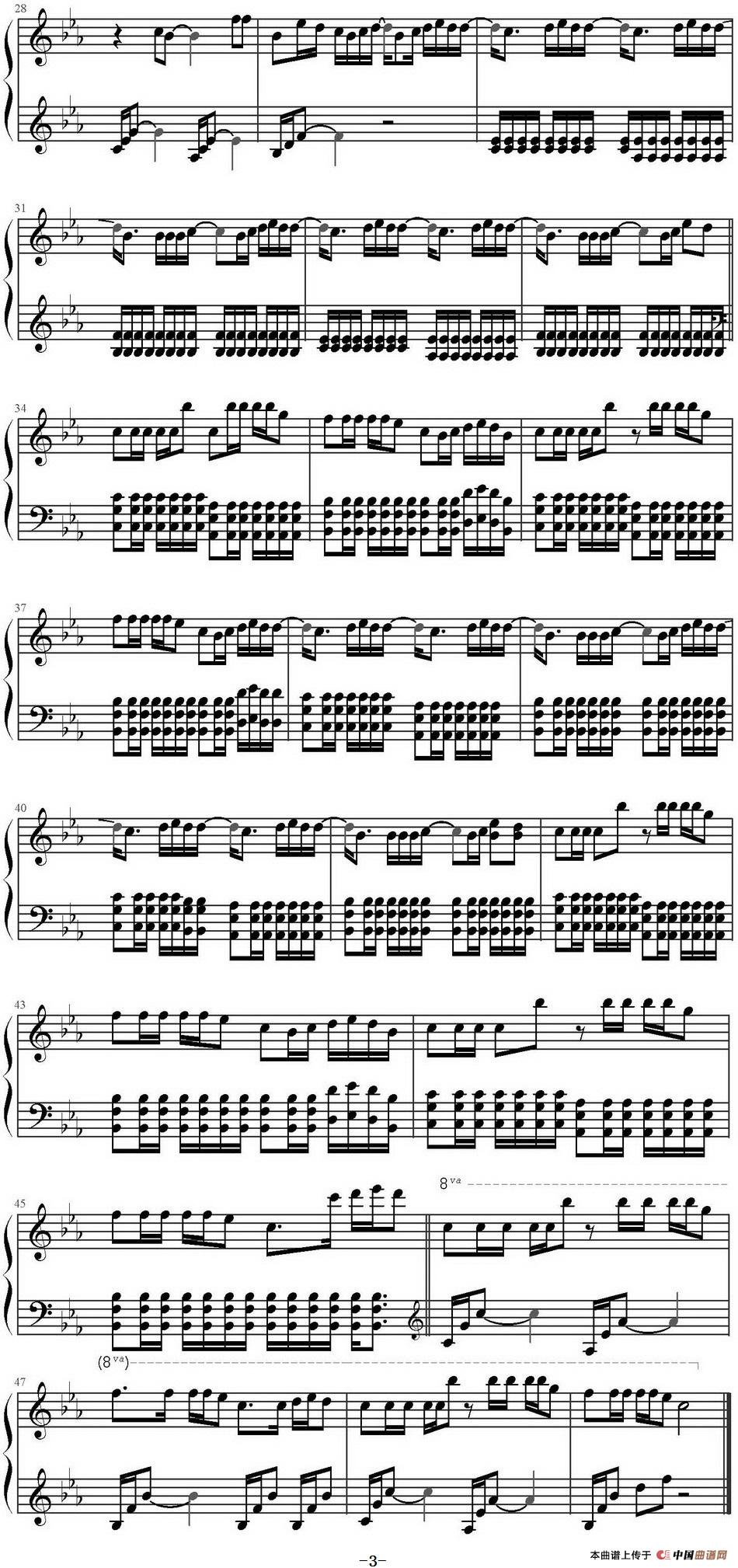 提示:在曲谱图片上单击右键,选择“图片另存为...”即可将曲谱保存到您的电脑中,打印时候可将图片插入到WORD中,调整合适大小打印即可。
