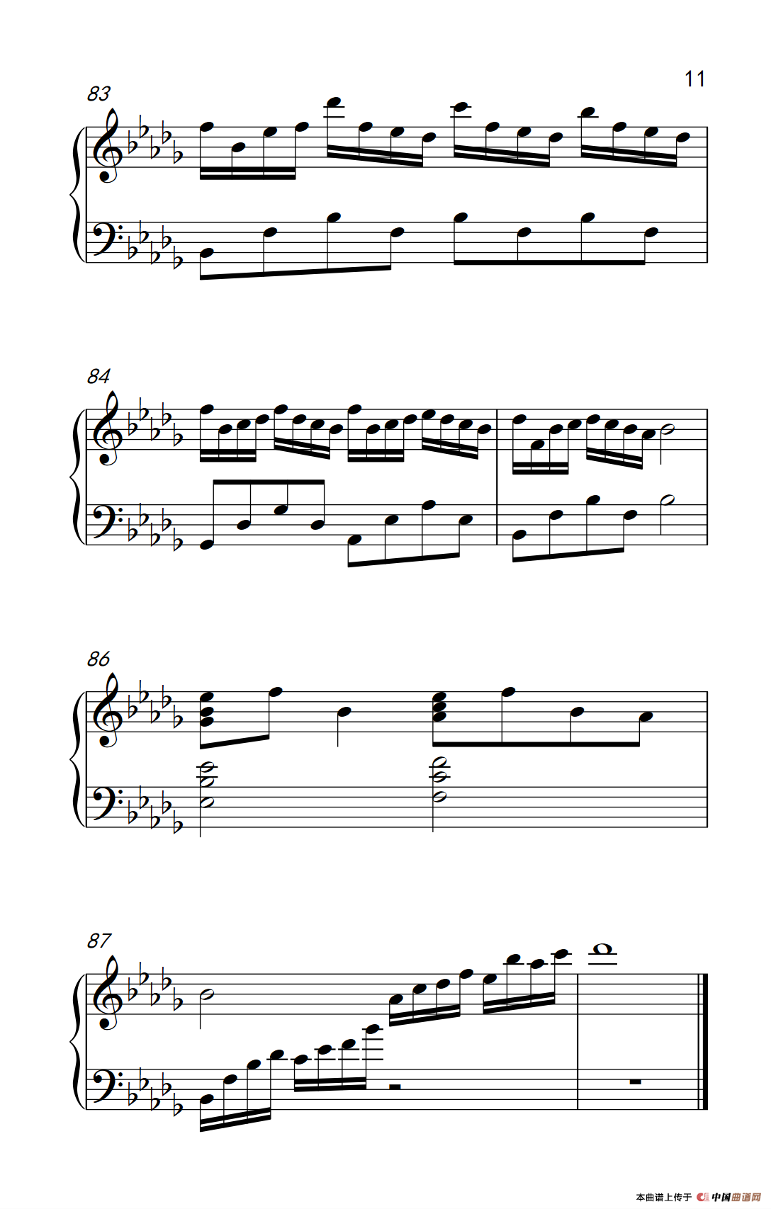 提示:在曲谱图片上单击右键,选择“图片另存为...”即可将曲谱保存到您的电脑中,打印时候可将图片插入到WORD中,调整合适大小打印即可。