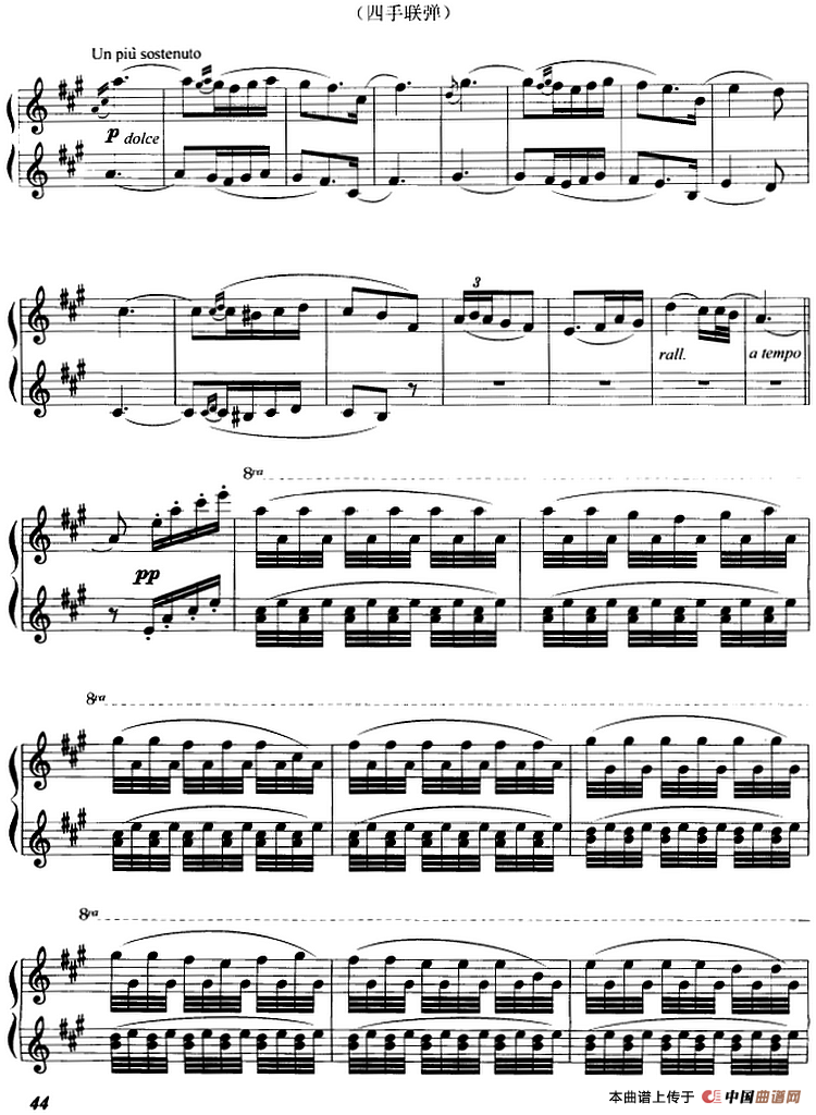 选自姚恒璐编《钢琴重奏曲集:四手联弹和双钢琴曲30首》