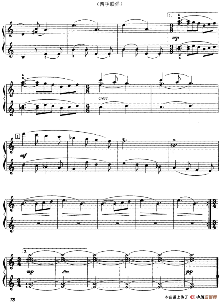 选自姚恒璐编《钢琴重奏曲集:四手联弹和双钢琴曲30首》