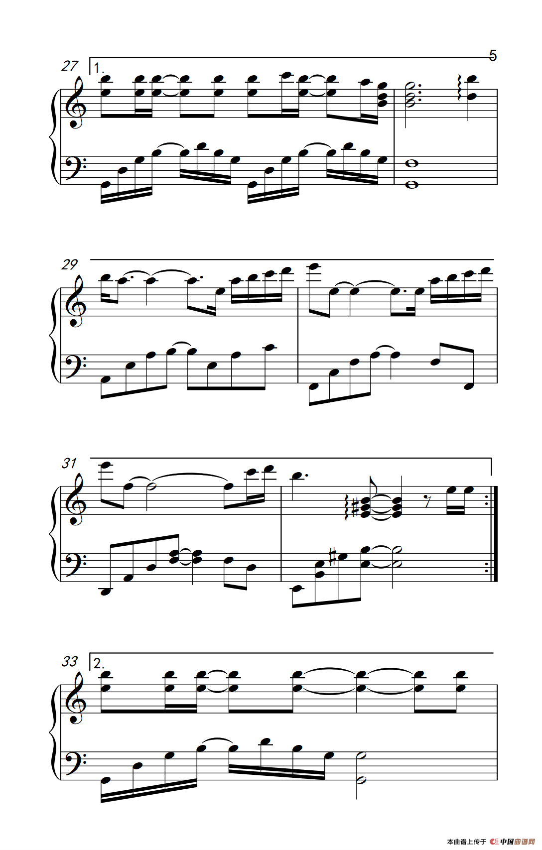提示:在曲谱图片上单击右键,选择“图片另存为...”即可将曲谱保存到您的电脑中,打印时候可将图片插入到WORD中,调整合适大小打印即可。