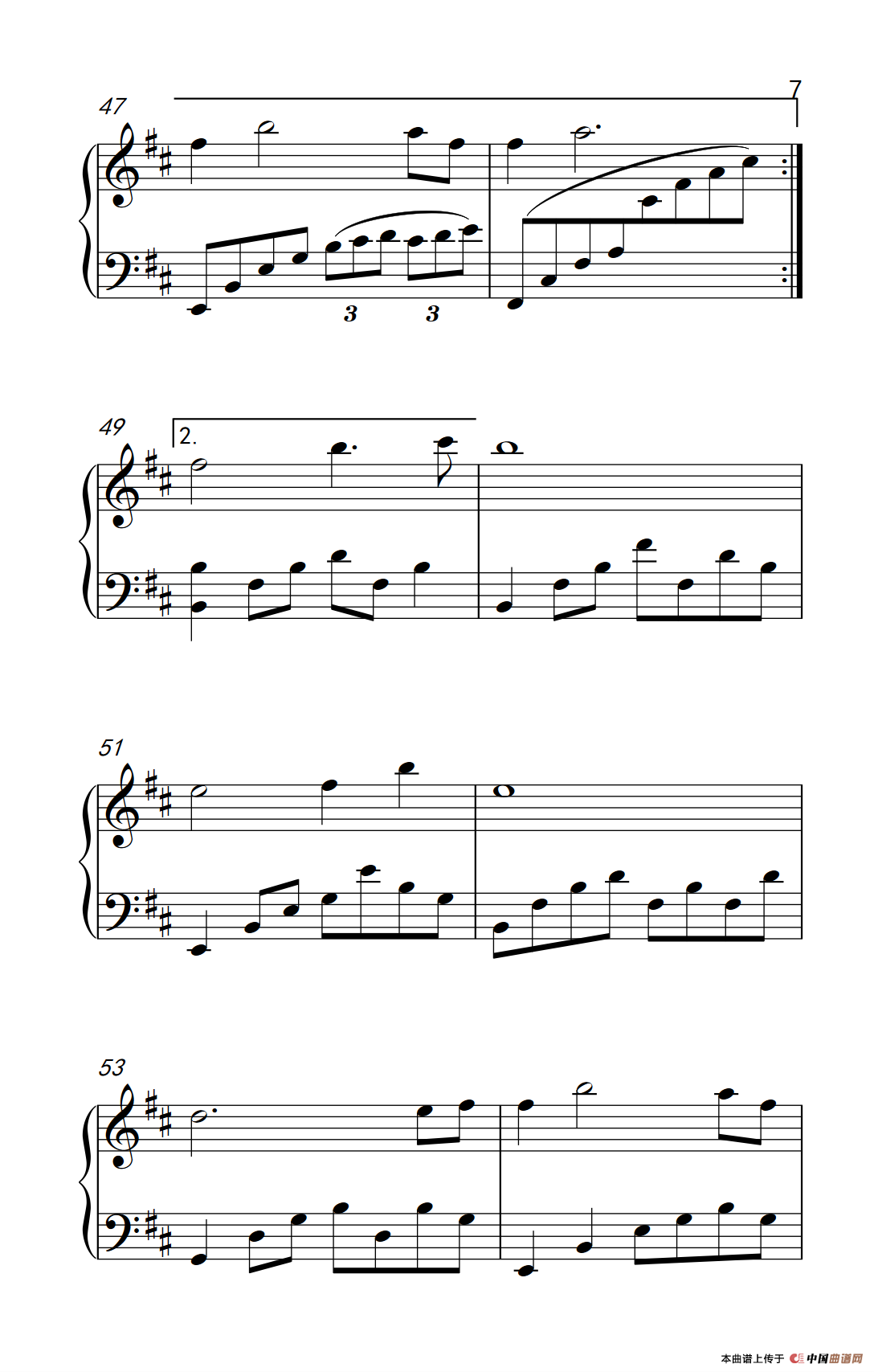 提示:在曲谱图片上单击右键,选择“图片另存为...”即可将曲谱保存到您的电脑中,打印时候可将图片插入到WORD中,调整合适大小打印即可。