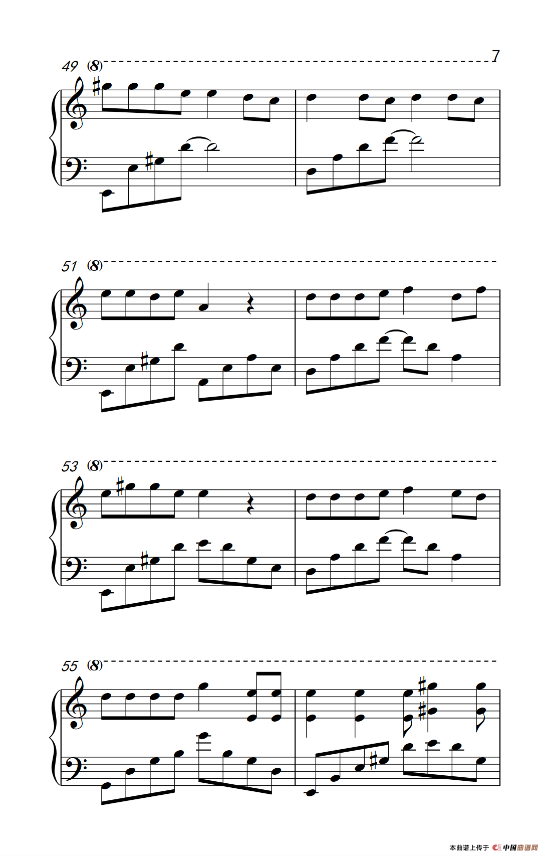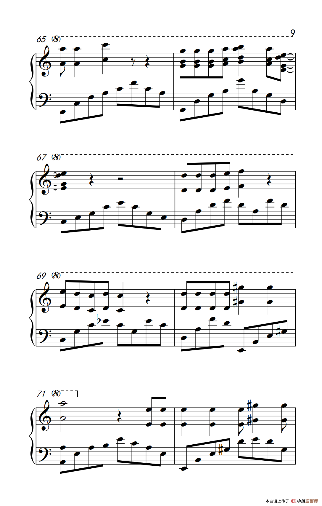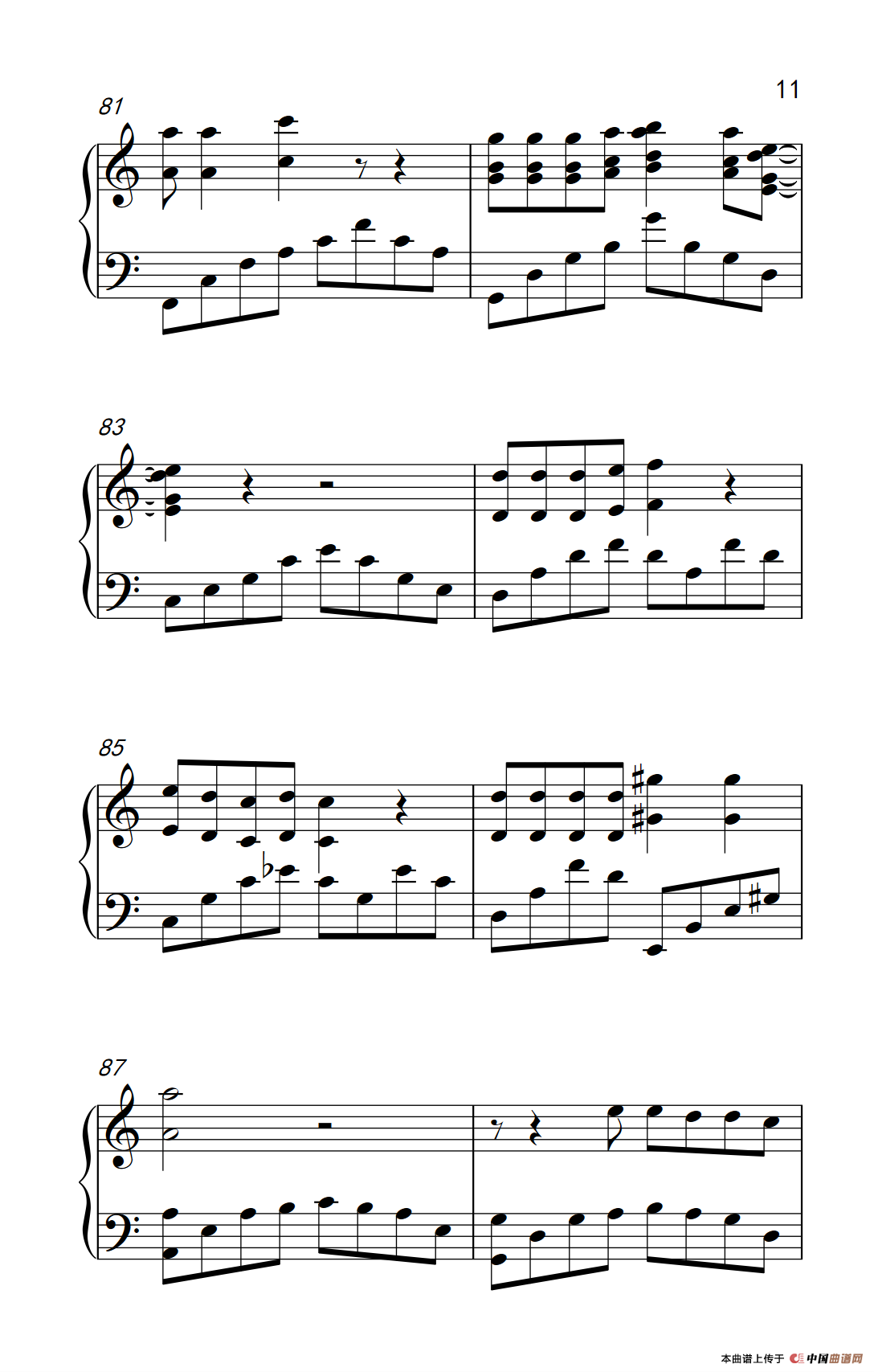提示:在曲谱图片上单击右键,选择“图片另存为...”即可将曲谱保存到您的电脑中,打印时候可将图片插入到WORD中,调整合适大小打印即可。