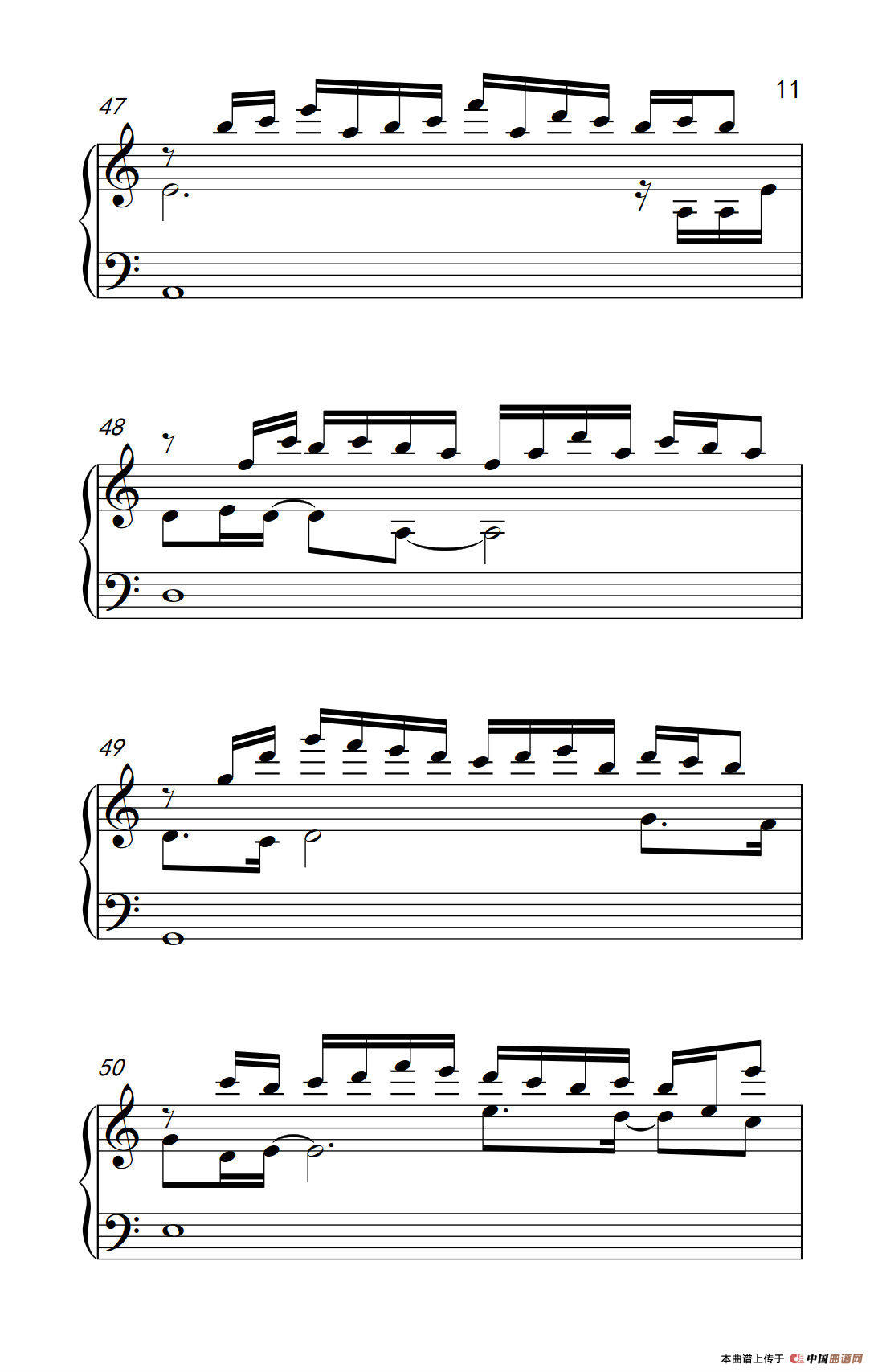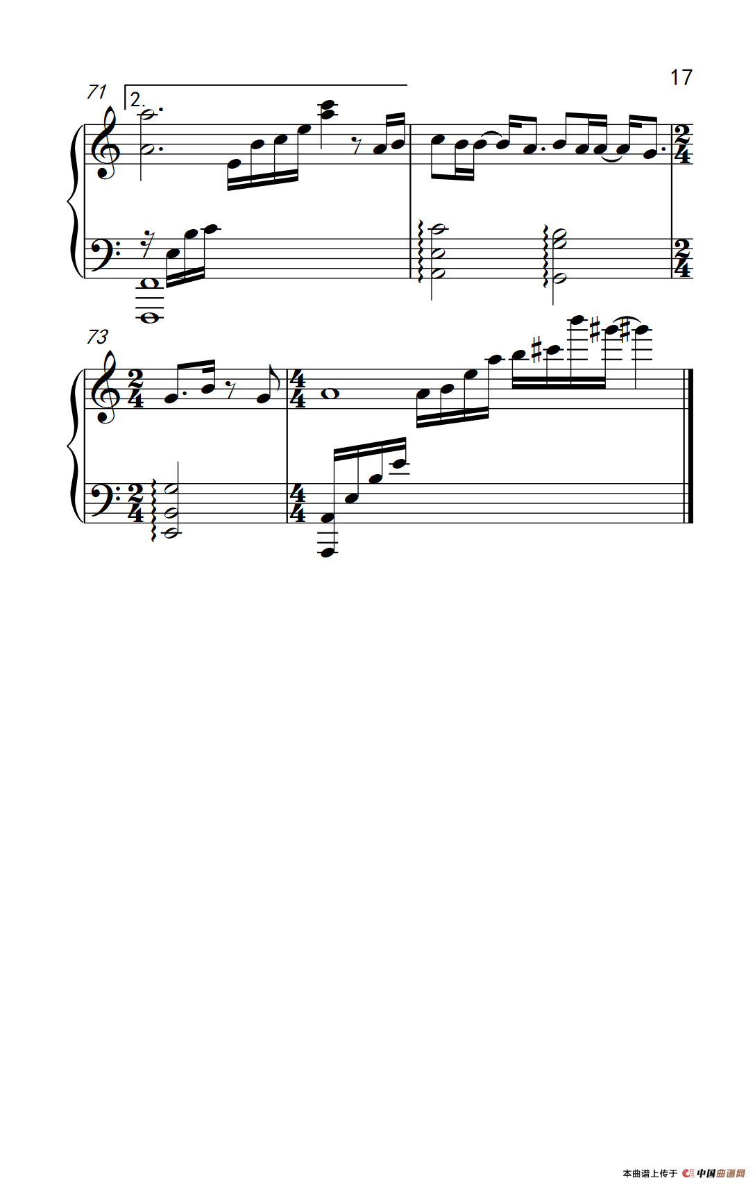 提示:在曲谱图片上单击右键,选择“图片另存为...”即可将曲谱保存到您的电脑中,打印时候可将图片插入到WORD中,调整合适大小打印即可。
