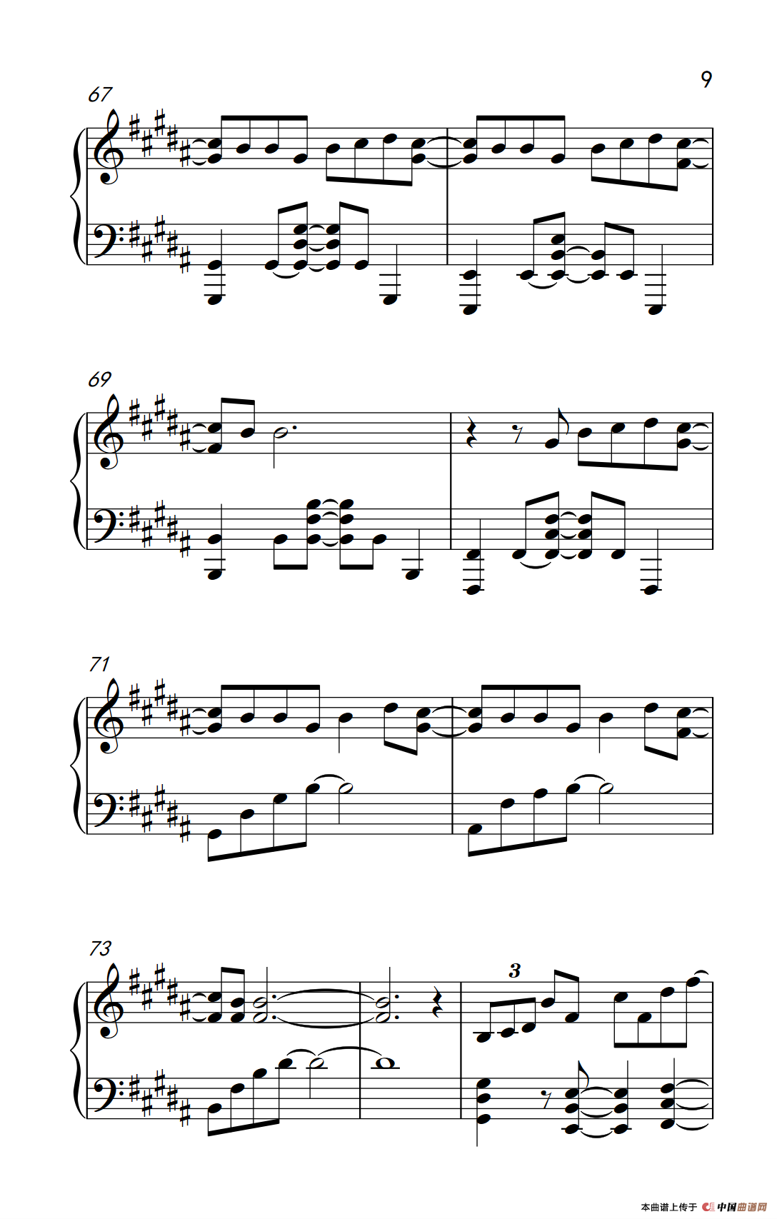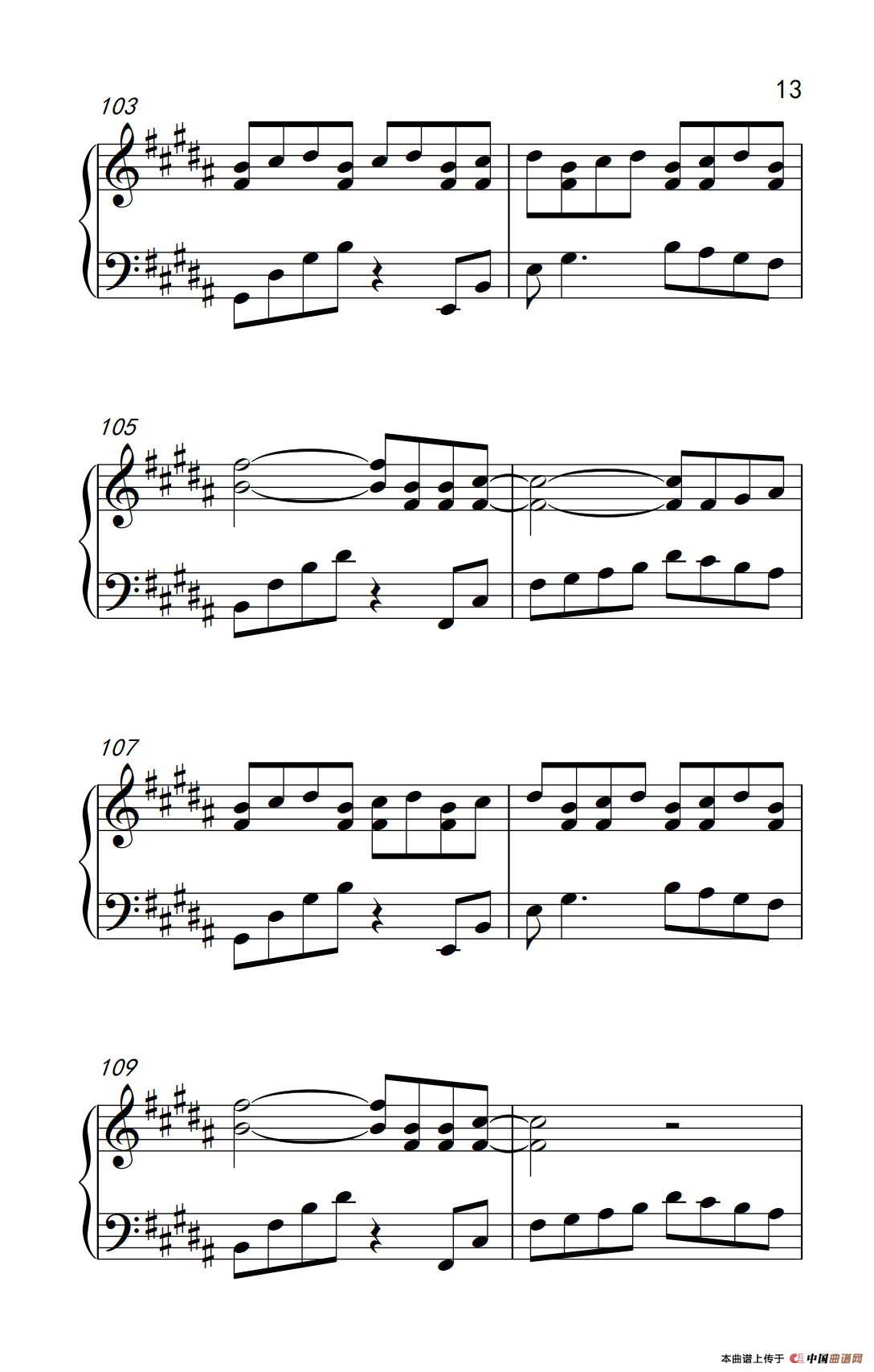提示:在曲谱图片上单击右键,选择“图片另存为...”即可将曲谱保存到您的电脑中,打印时候可将图片插入到WORD中,调整合适大小打印即可。