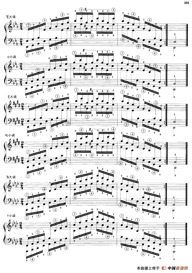 钢琴琶音练习:同向四个八度